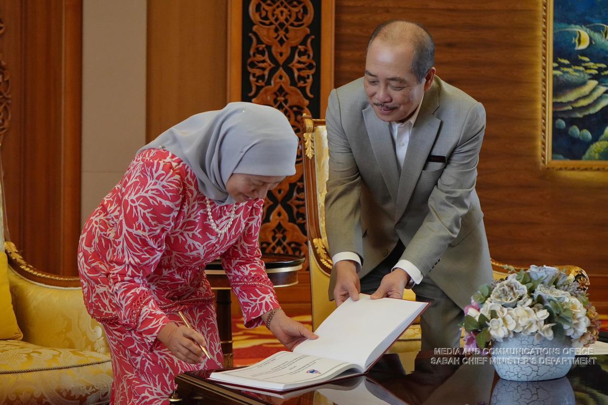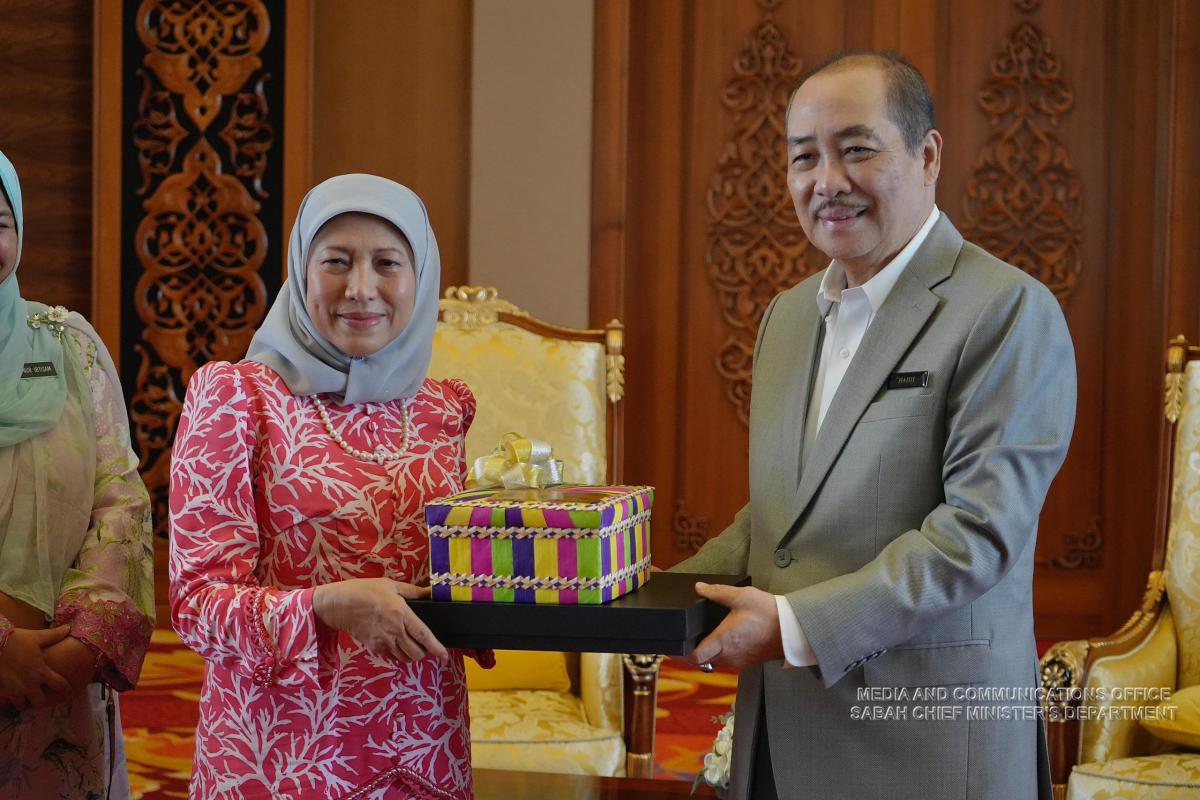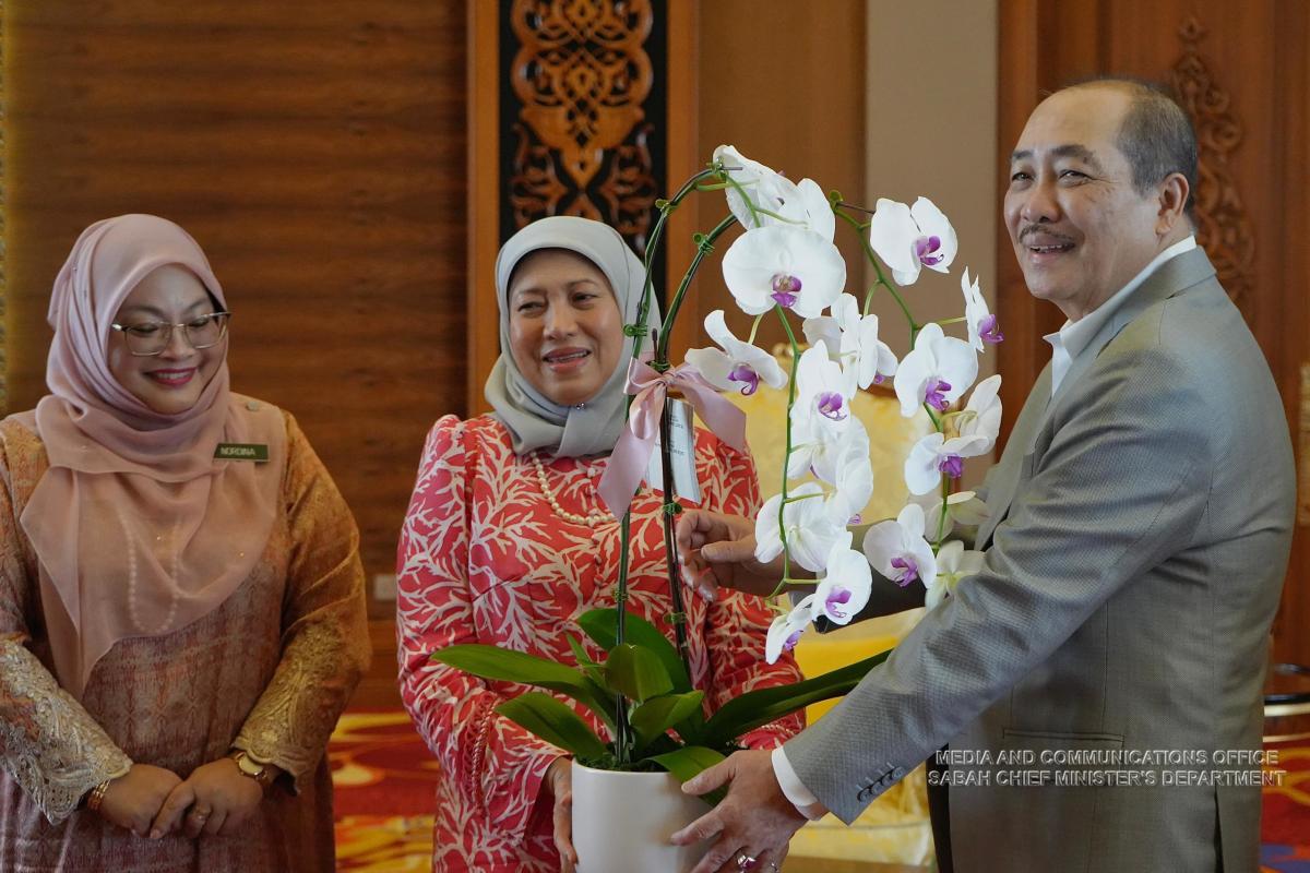 Yang Amat Berhormat Ketua Menteri menerima Kunjungan Hormat daripada Menteri Pembangunan Wanita, Keluarga dan Masyarakat Yang Berhormat Dato Sri Hajah Nancy Shukri, di Pejabat Ketua Menteri, Menara Kinabalu