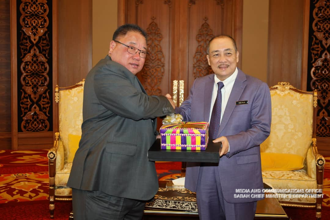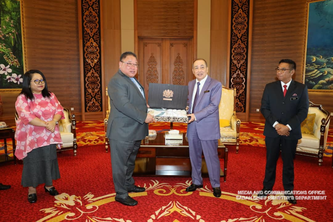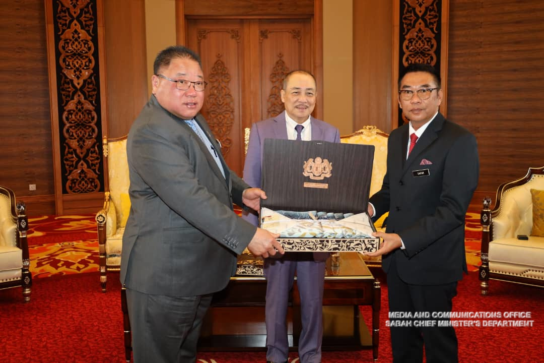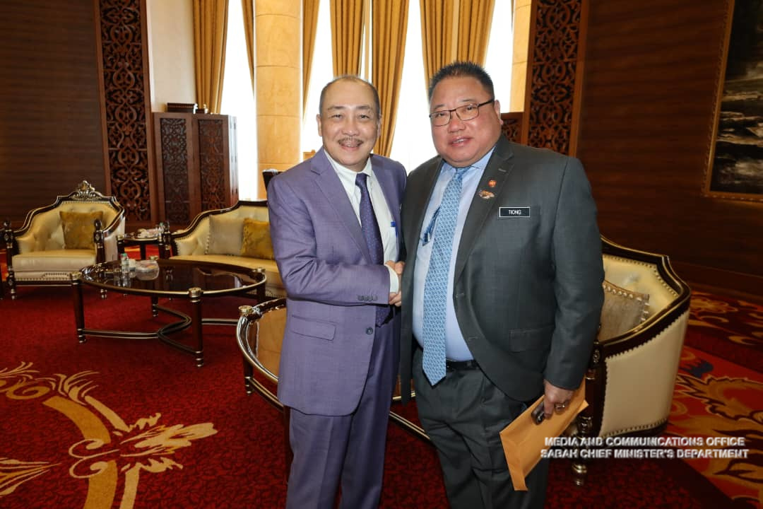 Yang Amat Berhormat Ketua Menteri menerima Kunjungan Hormat daripada Menteri Pelancongan, Seni dan Budaya Malaysia, Yang Bahagia Dato Sri Tiong King yg Sing, di Menara Kinabalu