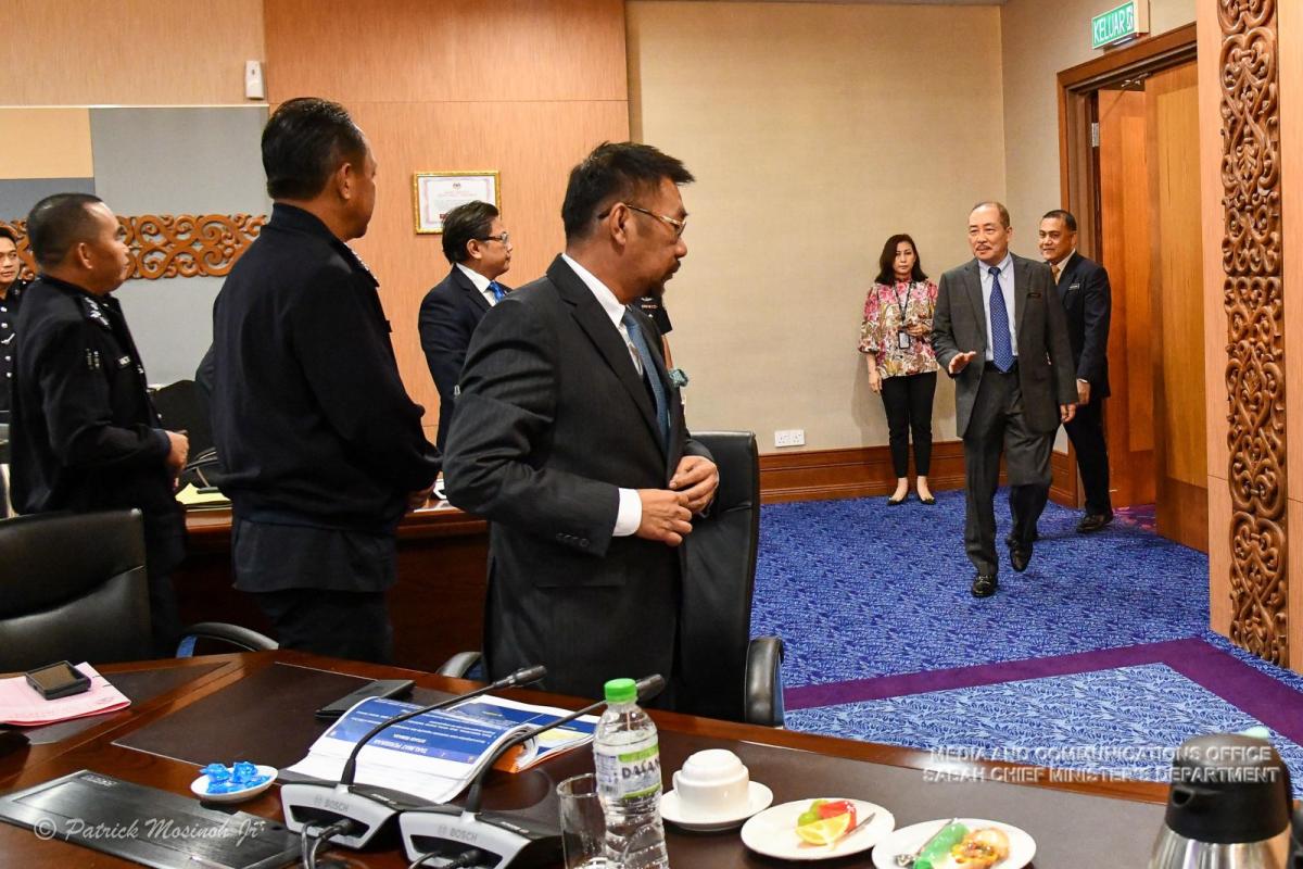 Yang Amat Berhormat Ketua Menteri Mempengerusikan Mesyuarat Jawatankuasa Keselamatan Negeri Sabah di Bilik Mesyuarat Utama, Tingkat 26, Menara Kinabalu