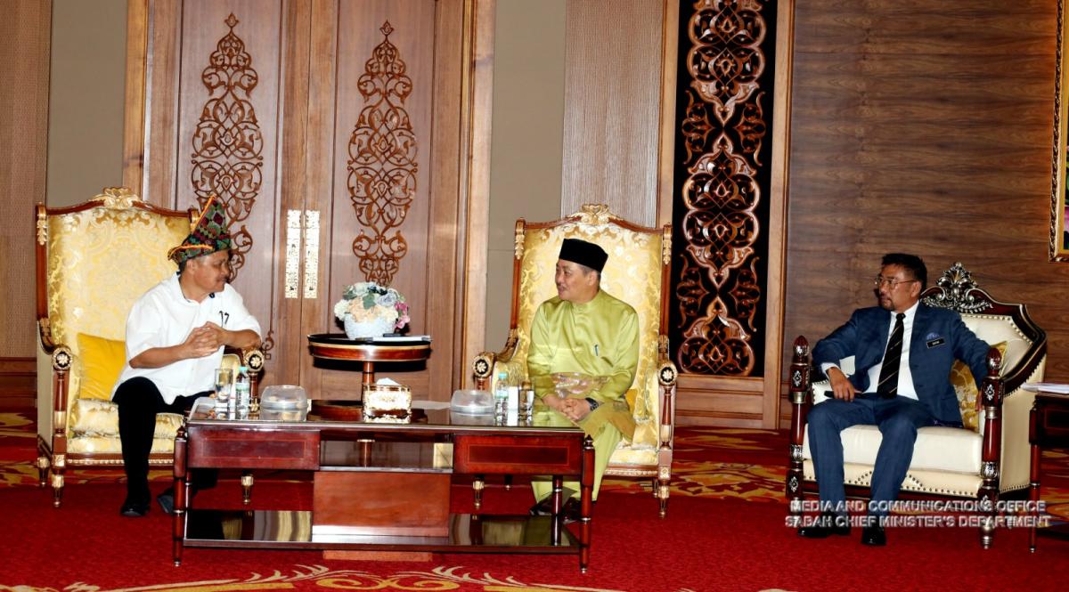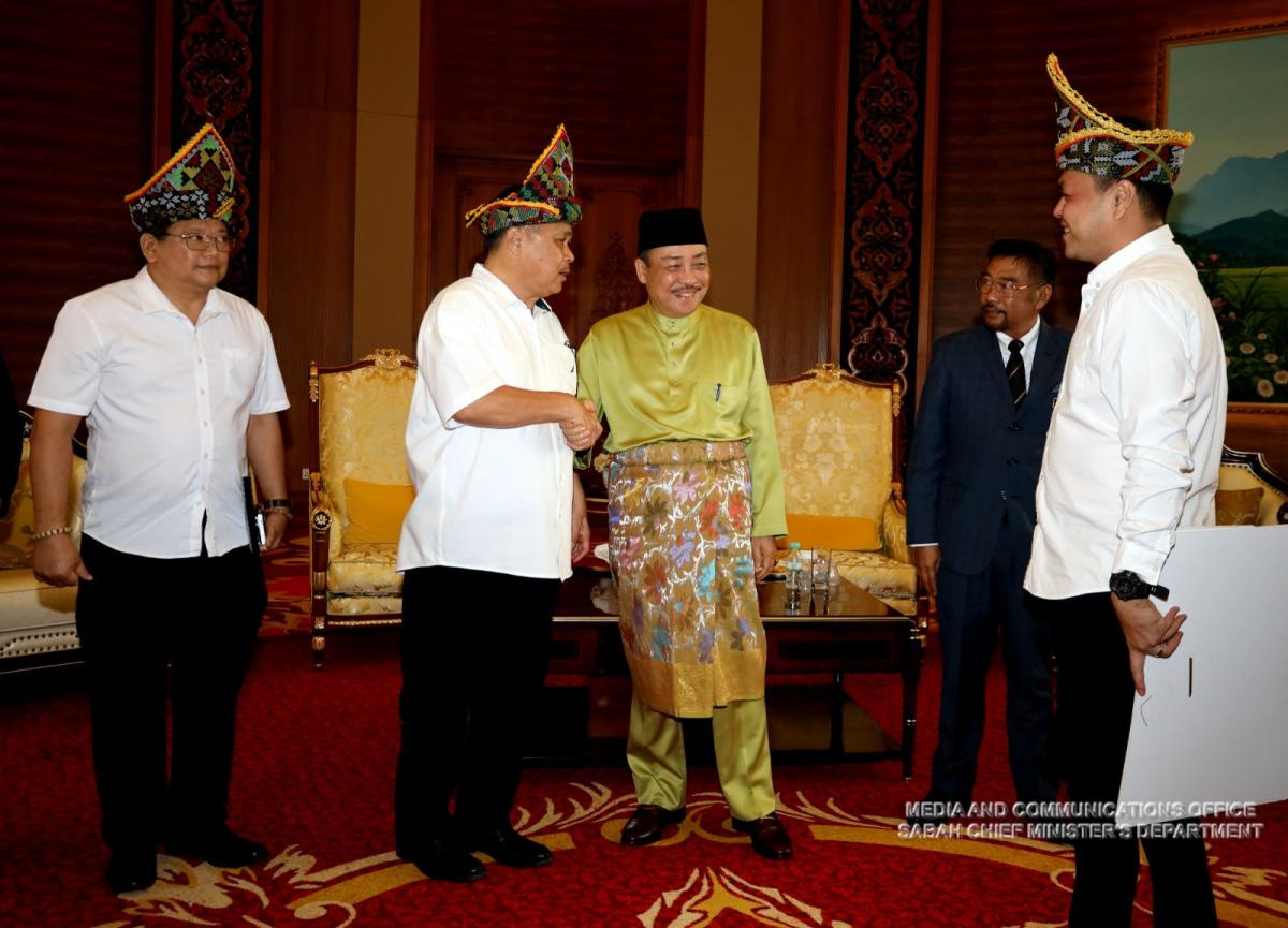 Yang Amat Berhormat Ketua Menteri menerima Kunjungan Hormat daripada Rombongan Pejabat Daerah Keningau yang diketuai oleh Pembantu Menteri Kerja Raya ADUN N.40 Bingkor, YB Datuk Robert Tawik di Pejabat Ketua Menteri, Menara Kinabalu