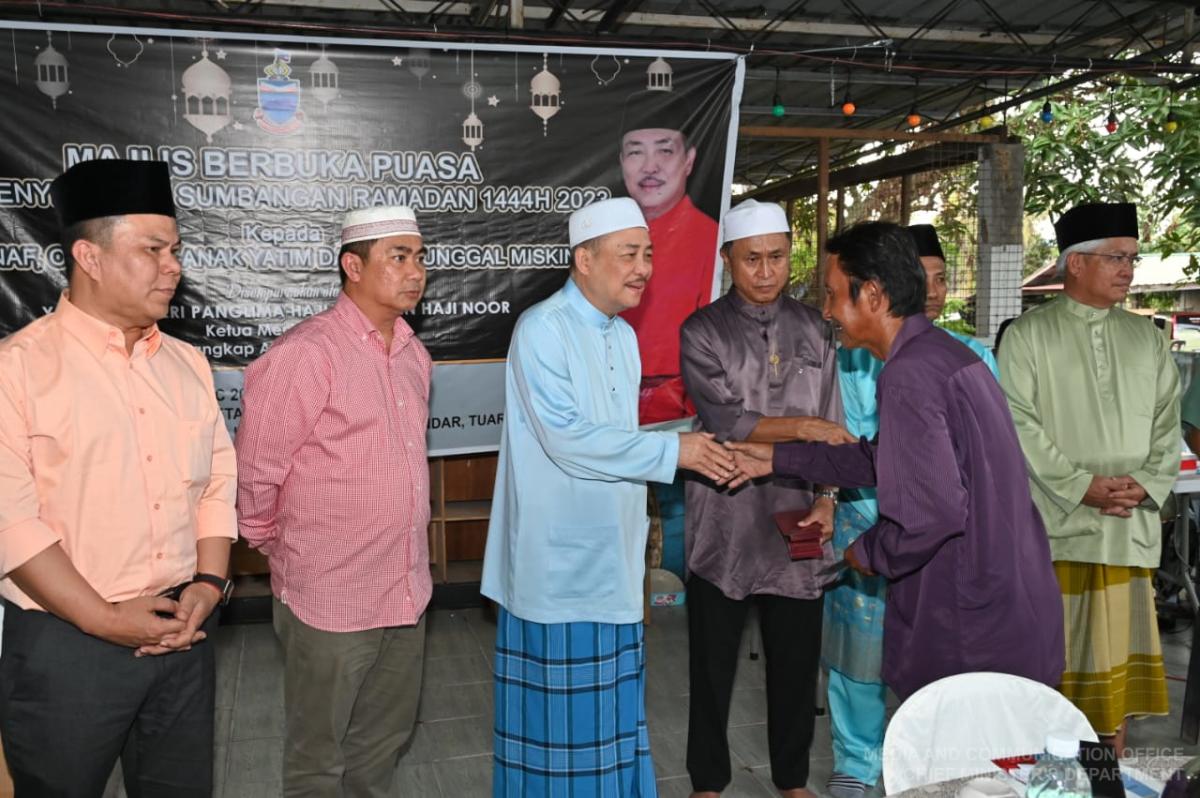 Datuk Seri Panglima Haji Hajiji Haji Noor menghadiri Majlis Berbuka Puasa dan Penyampaian Bantuan Ramadan 1444H Tahun 2023 di Masjid Haji Abd Razak Sabandar, Tuaran.