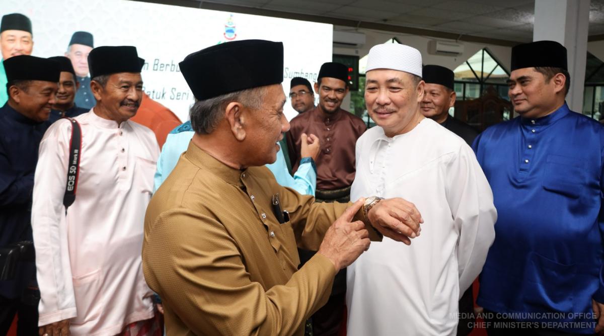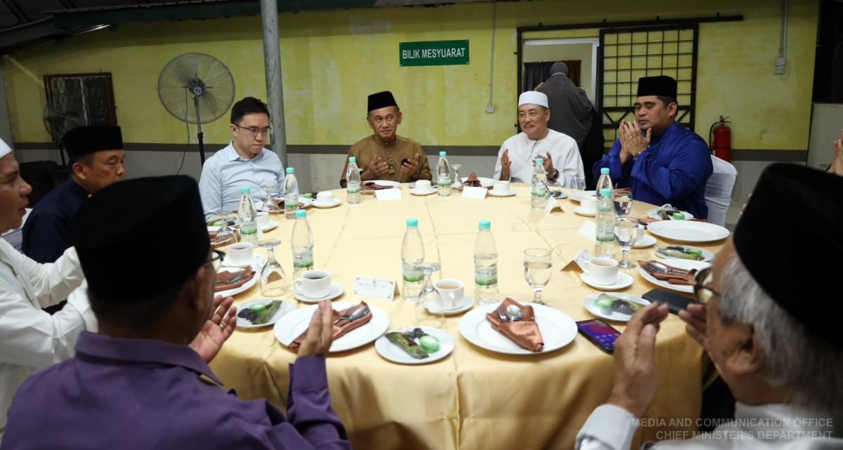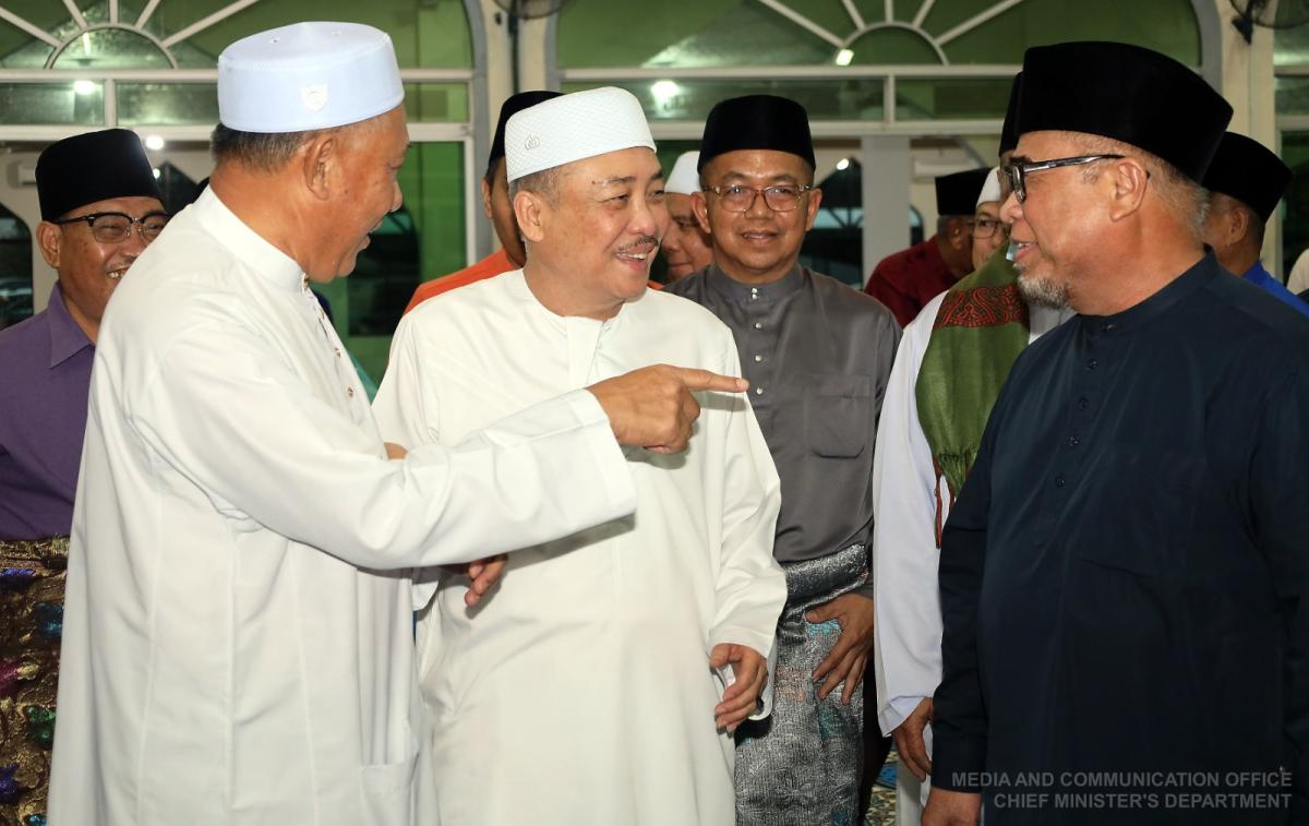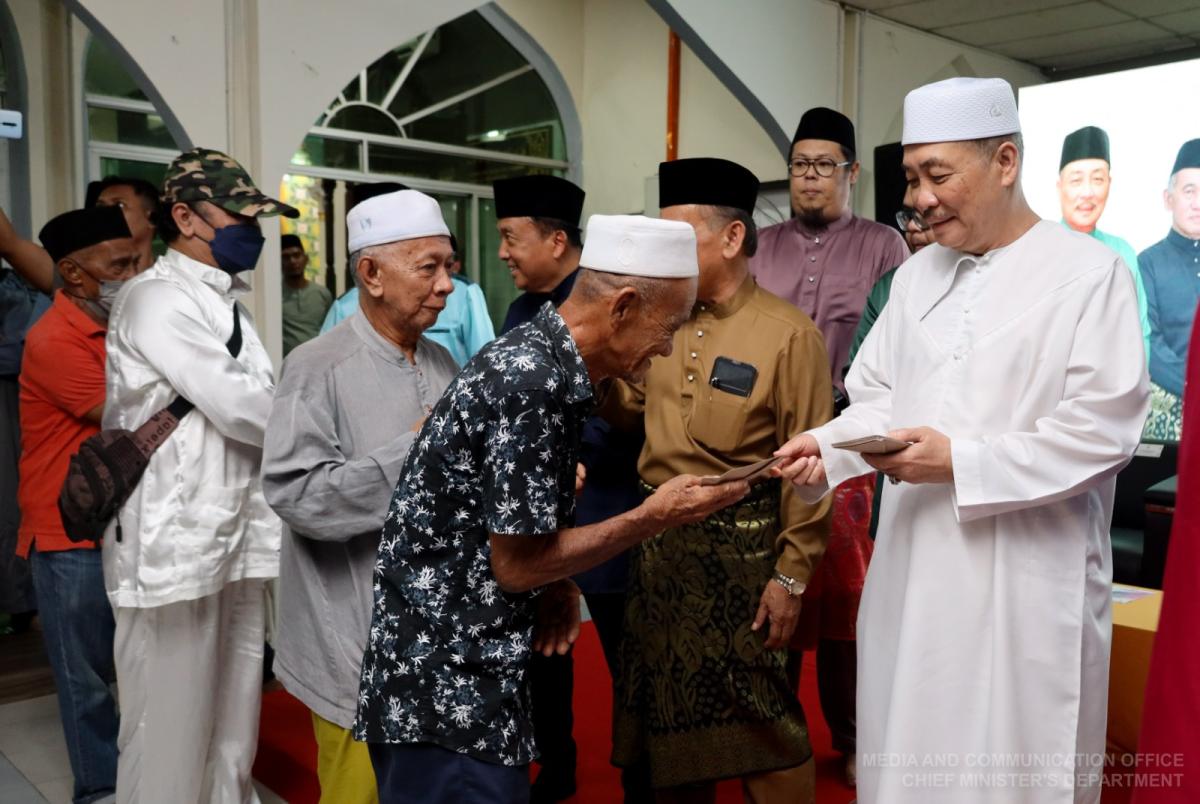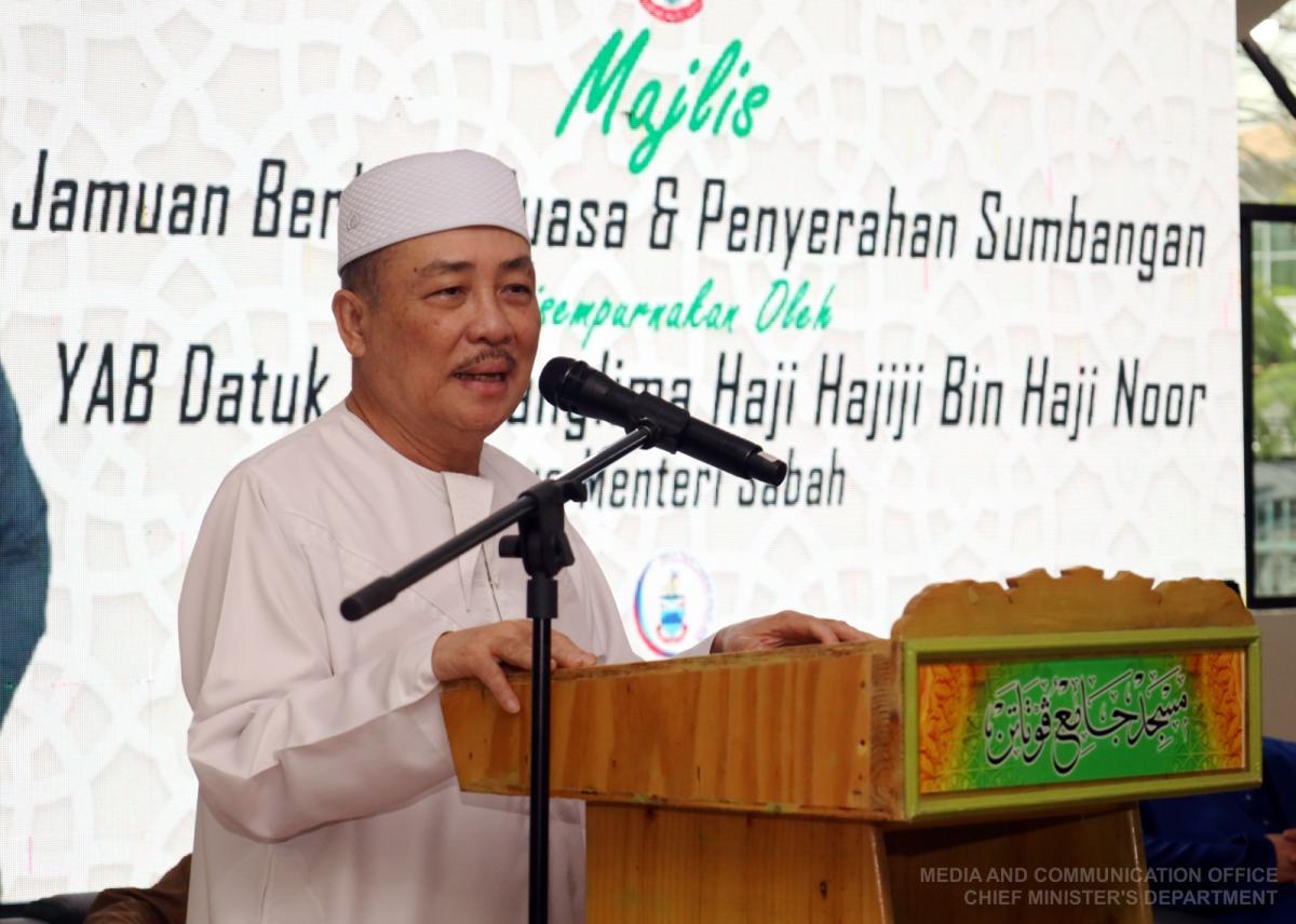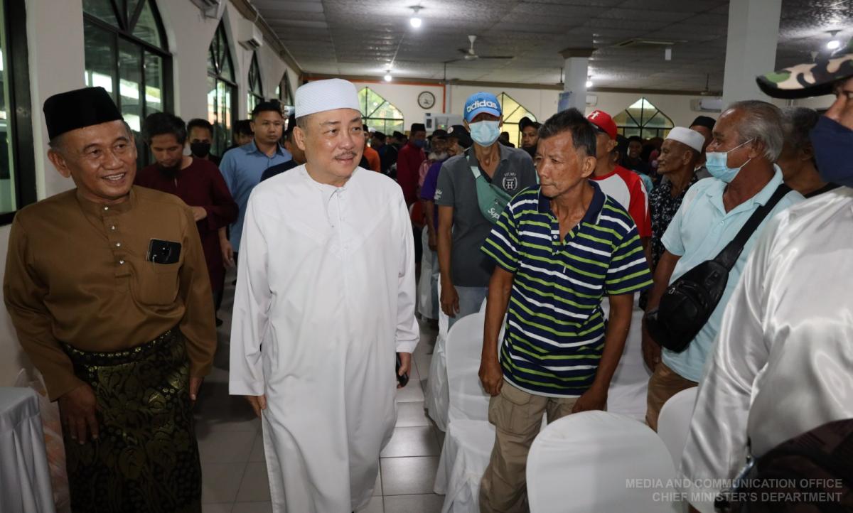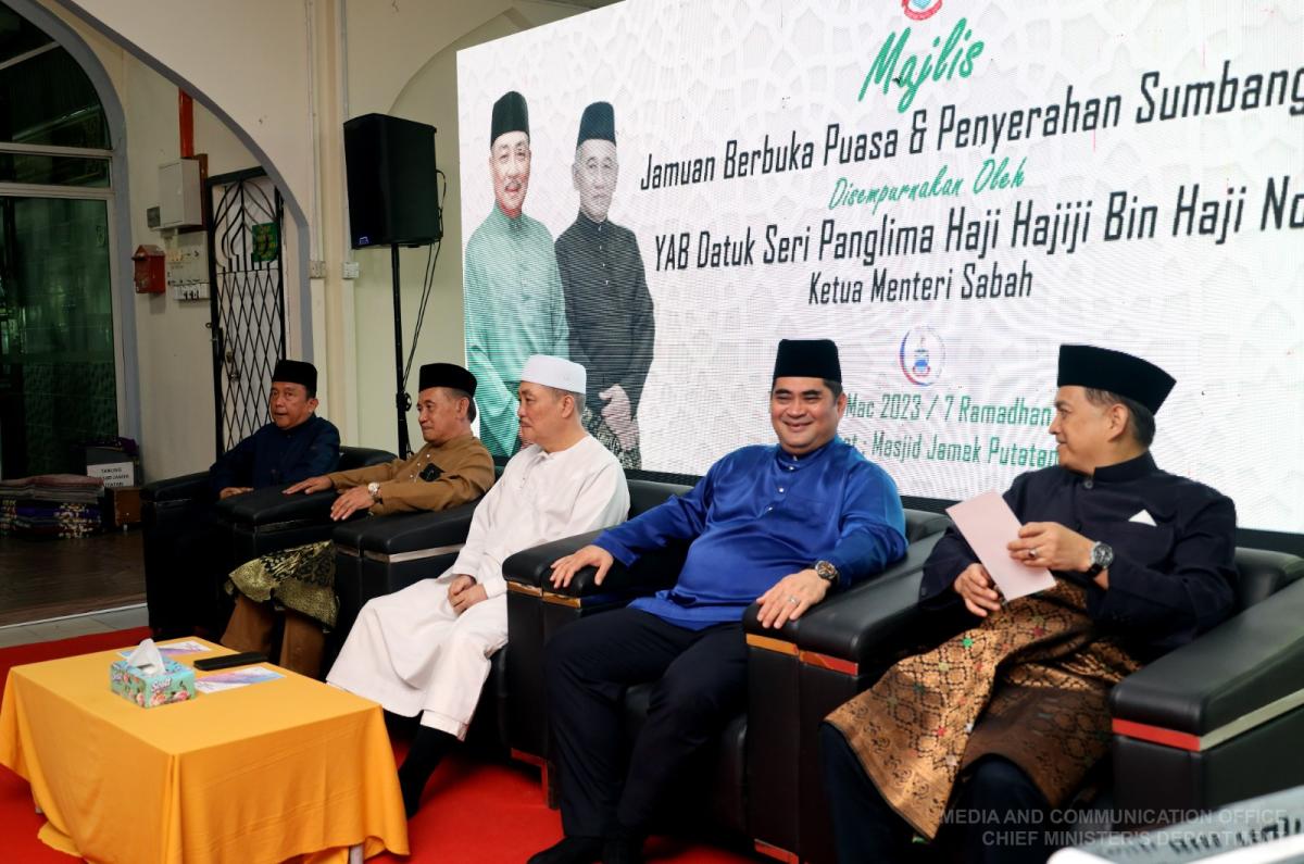 Ketua Menteri Datuk Seri Panglima Haji Hajiji Haji Noor menyampaikan sumbangan kepada golongan rakyat dan menyambut majlis berbuka puasa di Masjid Jamek, Putatan.