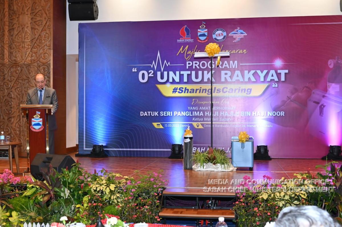 Yang Amat Berhormat Ketua Menteri Datuk Seri Panglima Haji Hajiji Haji Noor melancaran Program Oksigen (02) untuk Rakyat #SharingIsCaring di Dewan Bankuasi, Menara Kinabalu, Kota Kinabalu
