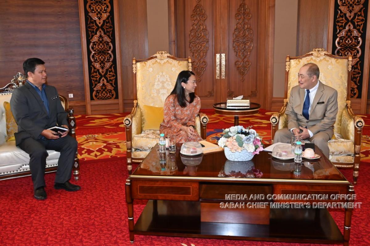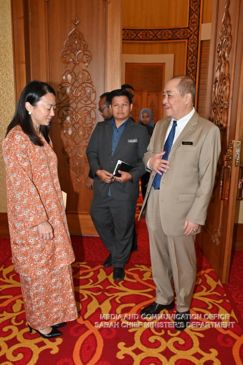 Yang Amat Berhormat Ketua Menteri menerima Kunjungan Hormat daripada Yang Berhormat Menteri Belia dan Sukan Malaysia, Yang Berhormat Puan Hanna Yeoh di Pejabat Ketua Menteri, Menara Kinabalu
