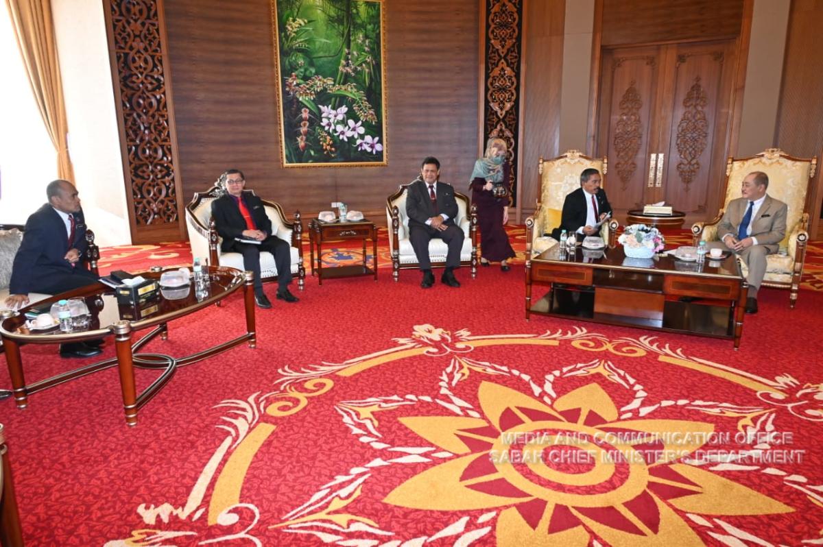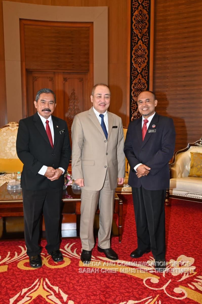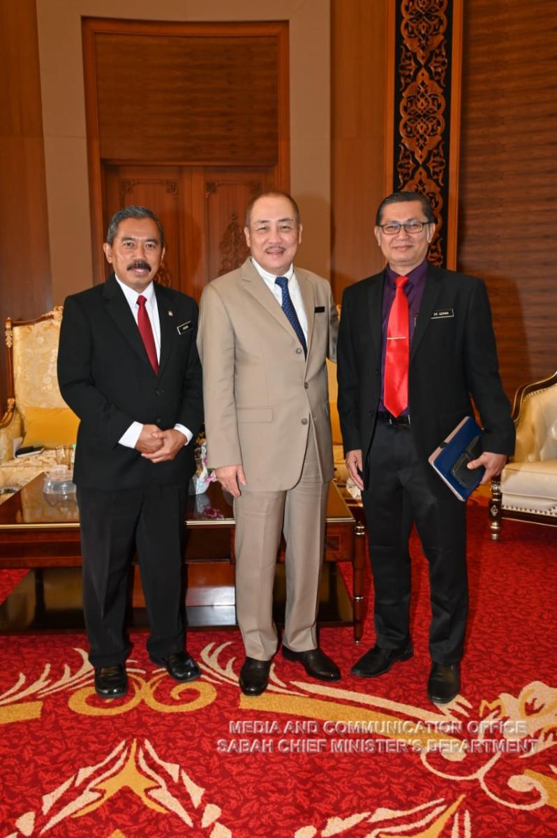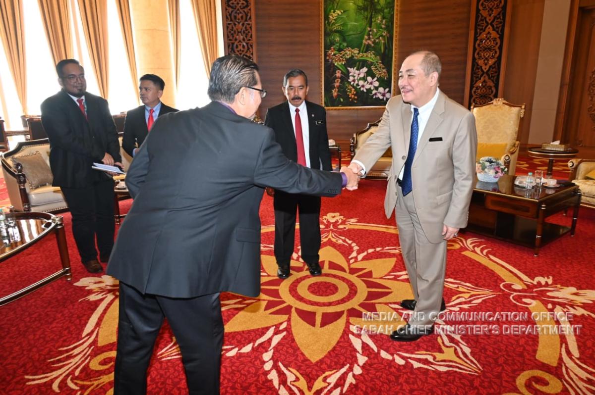 Yang Amat Berhormat Ketua Menteri menerima Kunjungan hormat daripada Timbalan Pengarah Pendidikan Negeri Sabah Tuan Haji Abidin Marjan berserta Rombanganya di Pejabat Ketua Menteri, Menara Kinabalu