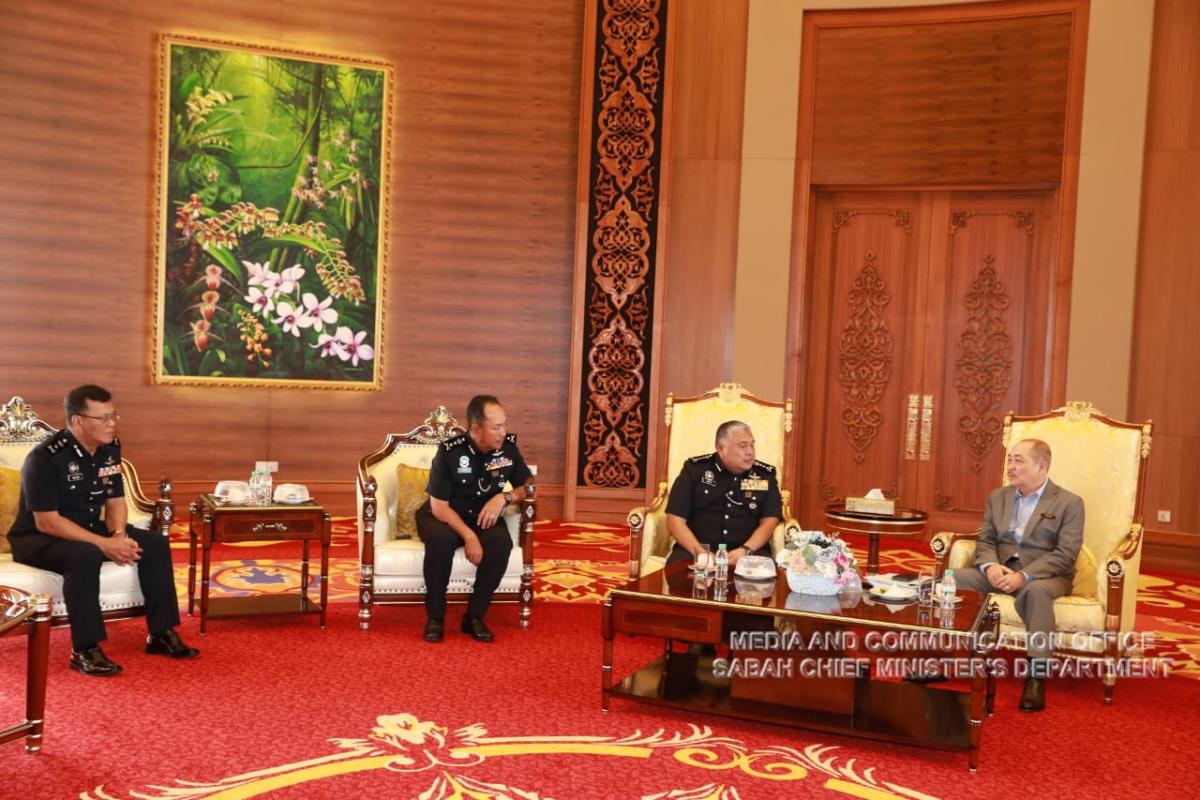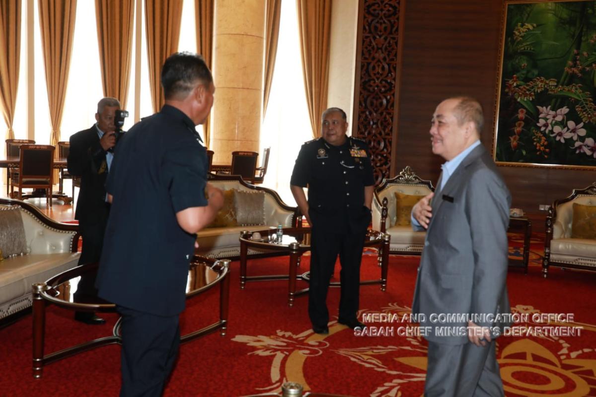 Yang Amat Berhormat Ketua Menteri menerima Kunjungan Hormat daripada Pesuruhjaya Polis Sabah, Datuk Idris Abdullah di Pejabat Ketua Menteri, Menara Kinabalu