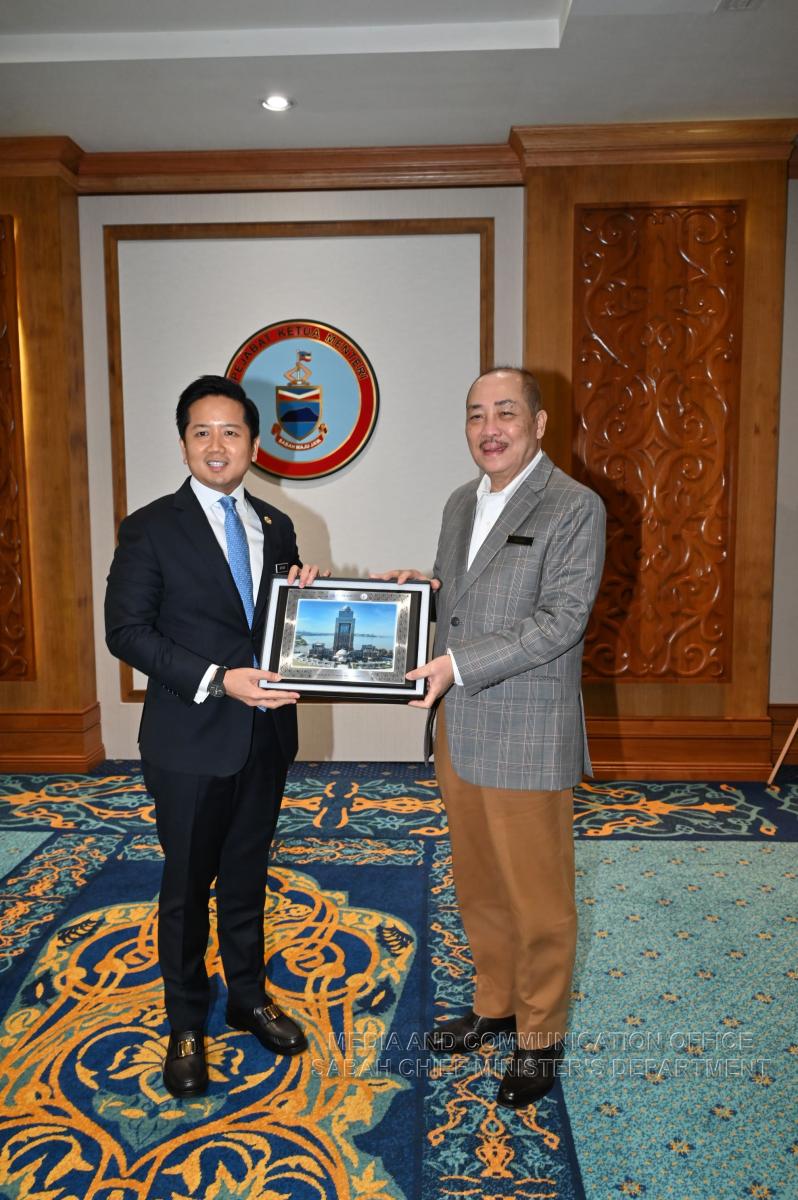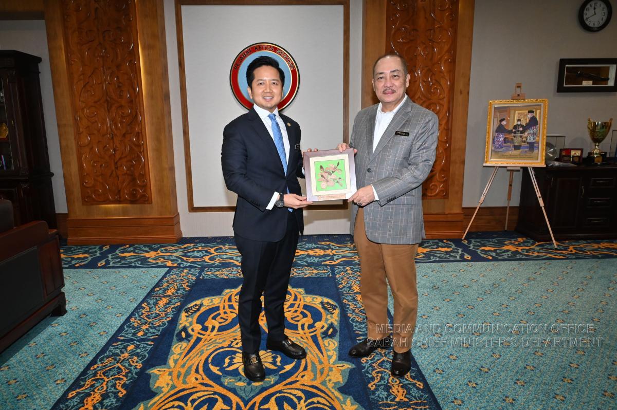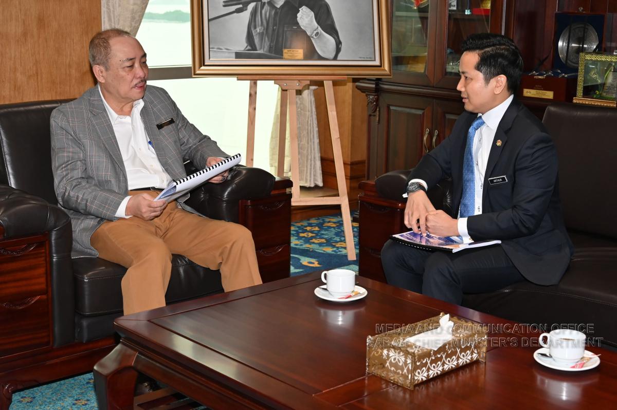 Yang Amat Berhormat Ketua Menteri menerima Kunjungan Hormat Timbalan Menteri di Jabatan Perdana Menteri (Ekonomi), Yang Berhormat Datuk Arthur Kurup di Pejabat Ketua Menteri, Menara Kinabalu