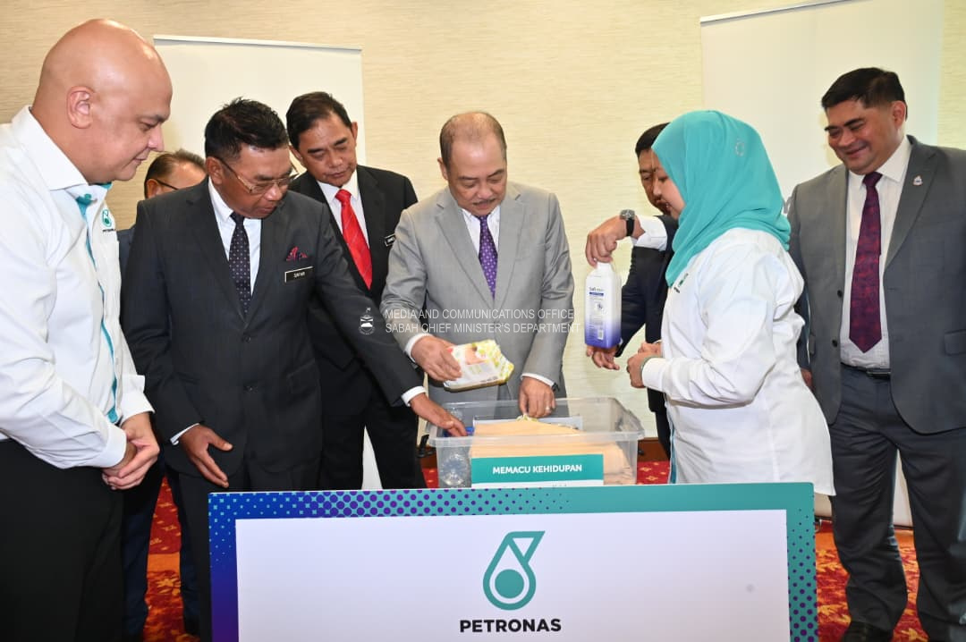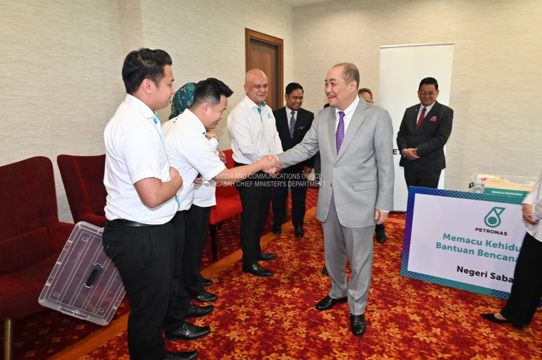 Yang Amat Berhormat Ketua Menteri Merasmikan Majlis Penyerahan Bantuan Bencana daripada Petronas, di Aras 30, Pejabat Ketua Menteri, Menara Kinabalu