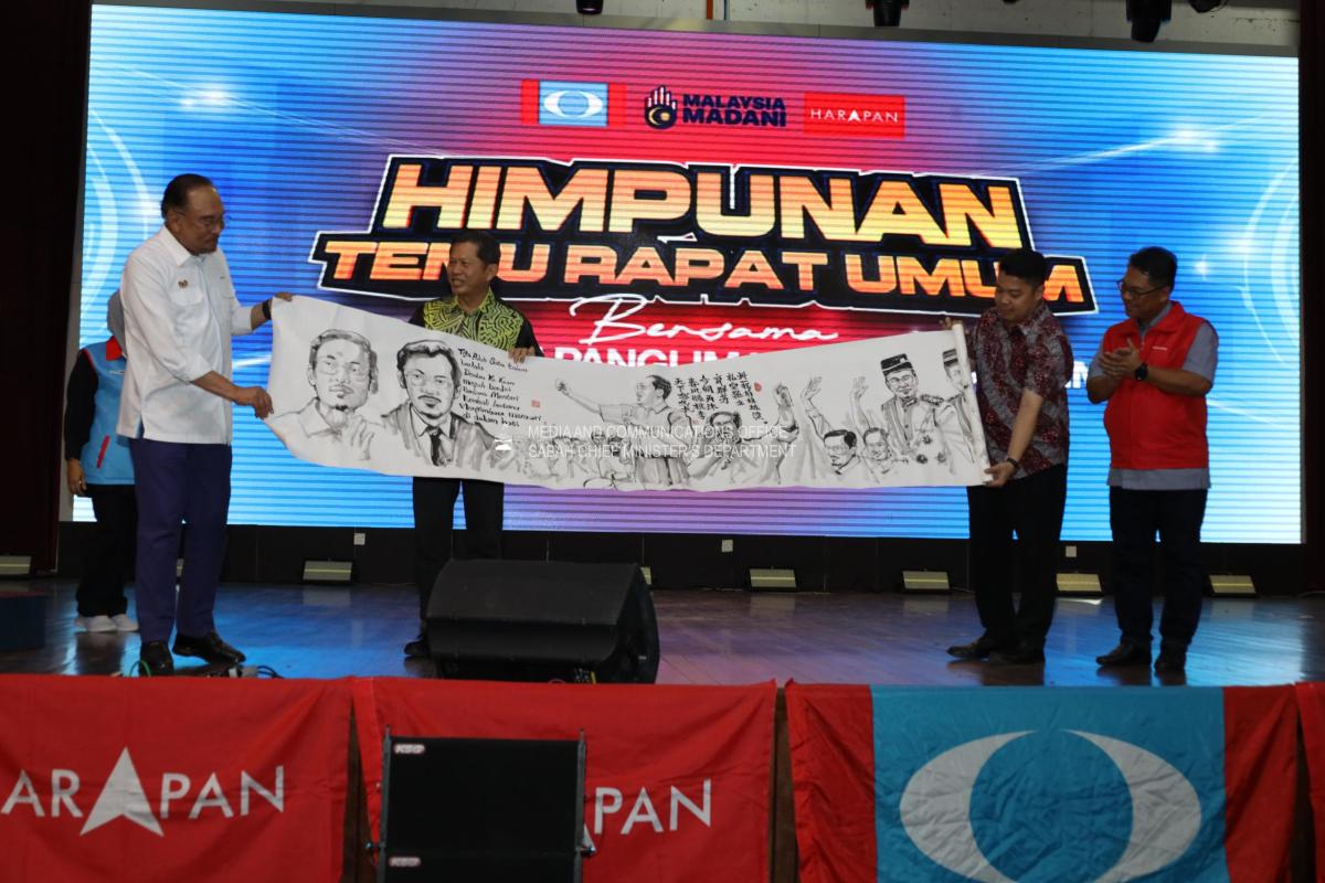 Yang Amat Berhormat Ketua Menteri Menghadiri Majlis Rapat Umum Parti Keadilan Sandakan bersama Perdana Menteri bertempat di Dewan Sekolah Yu Yuen, Sandakan