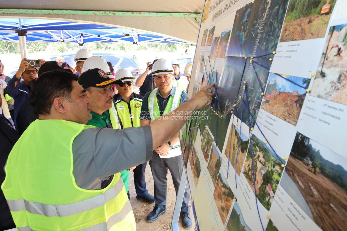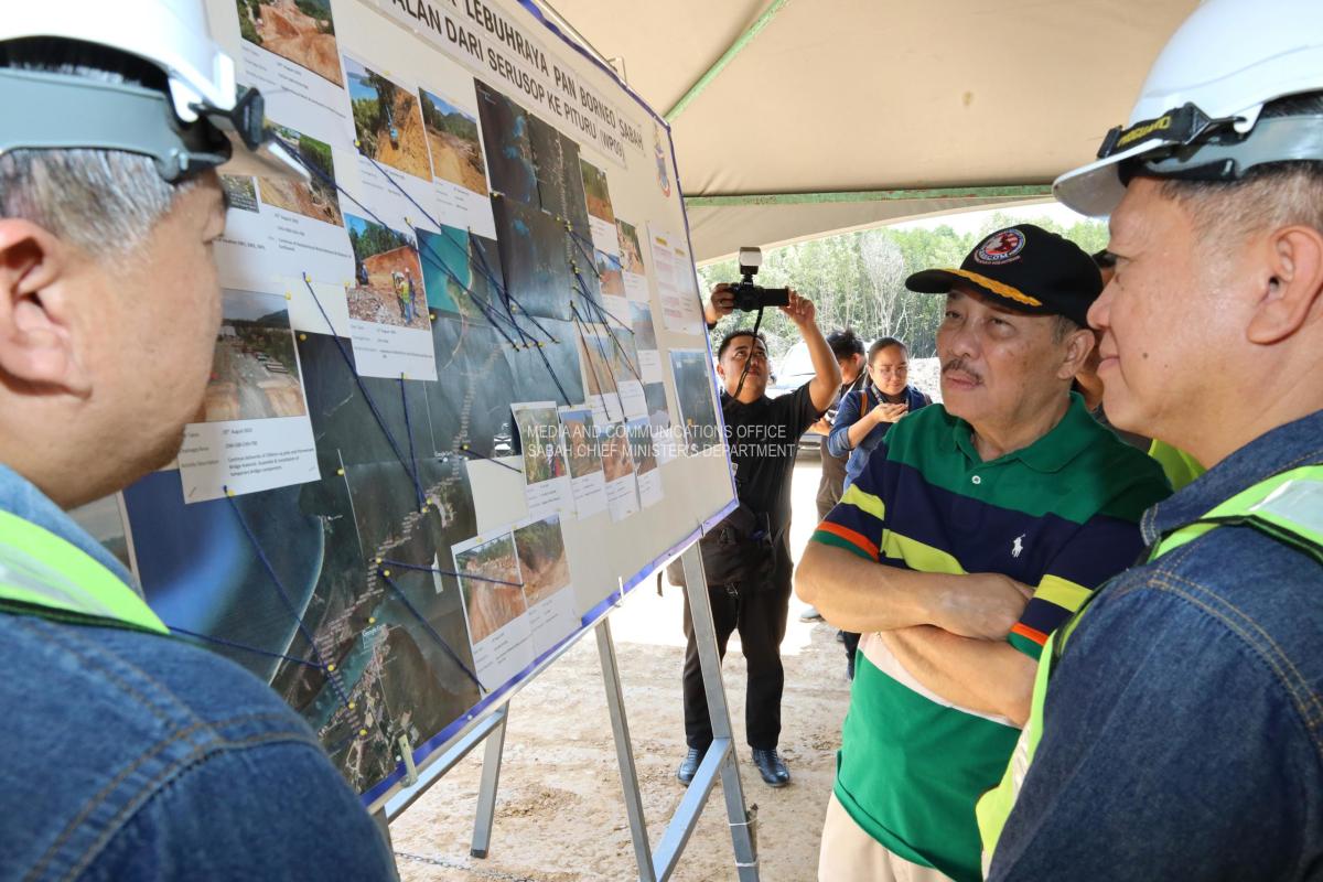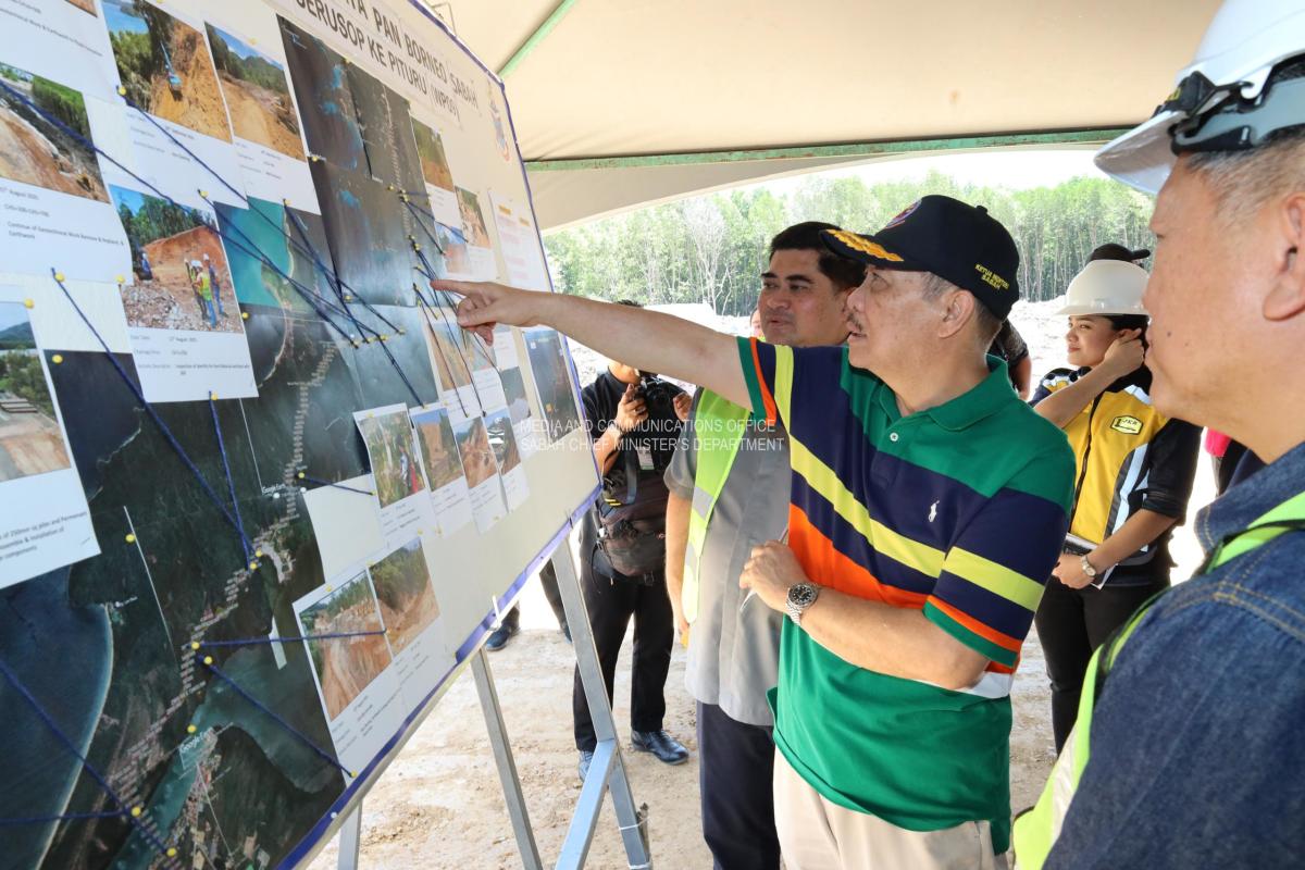 Yang Amat Berhormat Ketua Menteri Membuat Tinjauan Kemajuan Kerja Projek Pan Borneo WP9 di Kg Penimbawan