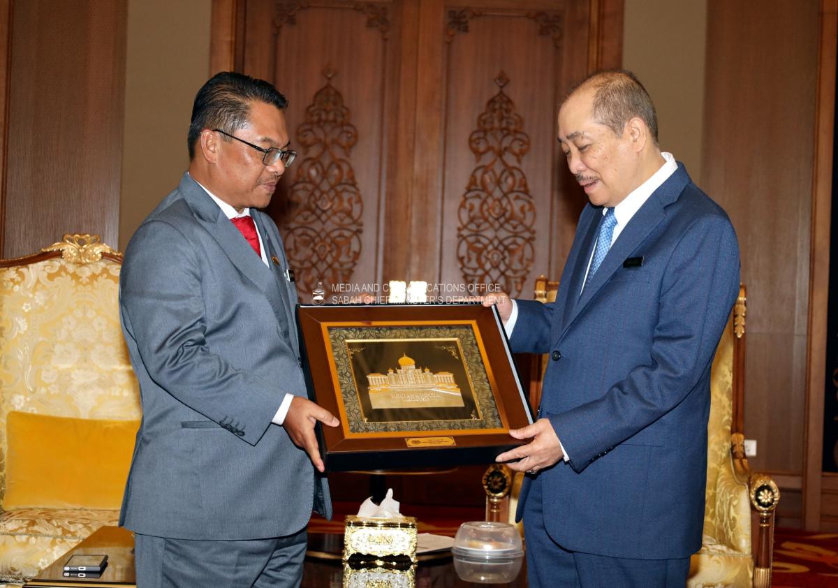Yang Amat Berhormat Ketua Menteri menerima Kunjungan Hormat daripada Menteri di Jabatan Perdana Menteri (Sabah Sarawak), YB Datuk Ts Mustapha Sakmud, di Aras 33, Menara Kinabalu