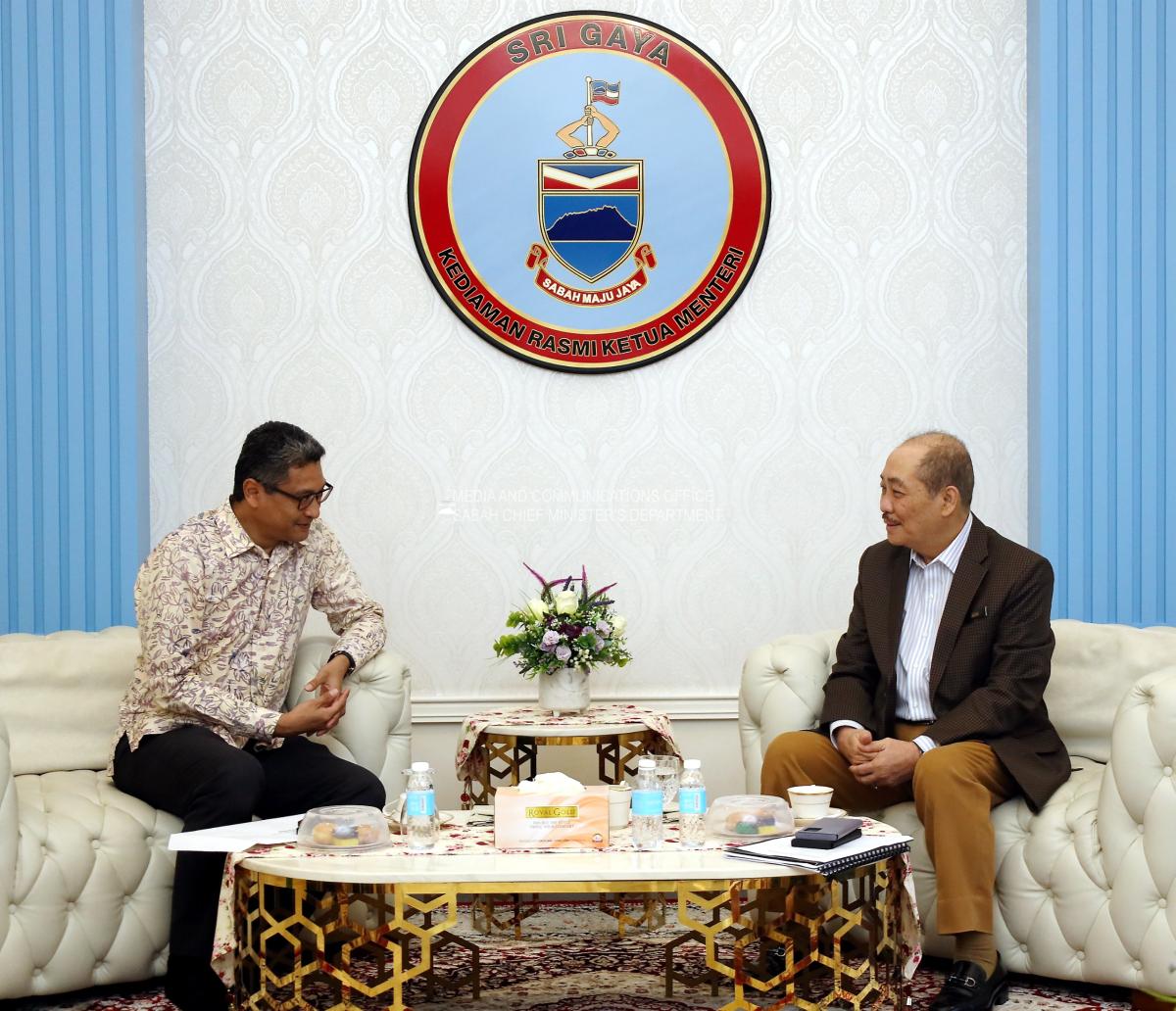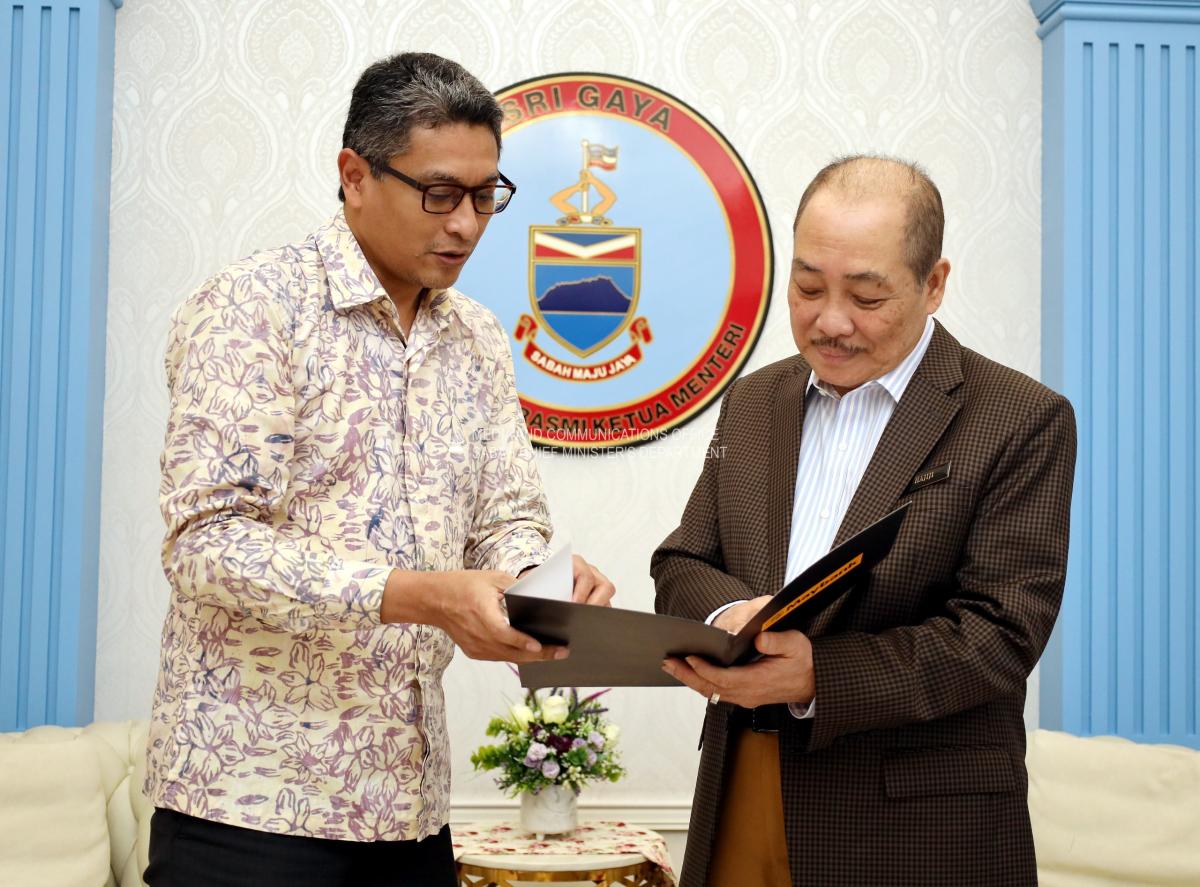 Yang Amat Berhormat Ketua Menteri menerima Kunjungan Hormat daripada Malayan Banking Berhad (Maybank), di Kediaman Rasmi Ketua Menteri, Sri Gaya.