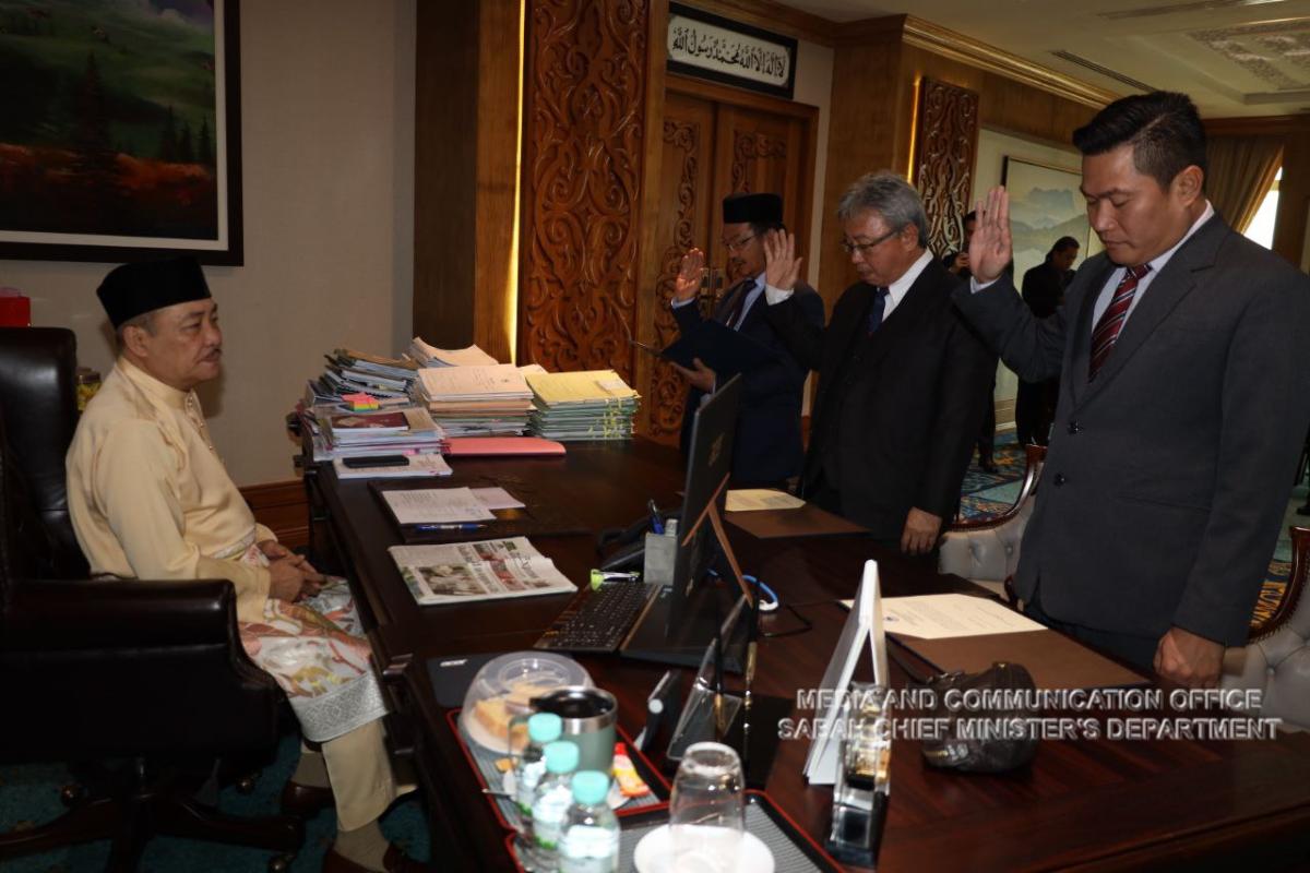 lima orang setiausaha politik telah mengangkat sumpah di hadapan Yang Amat Berhormat Ketua Menteri di Pejabat Ketua Menteri