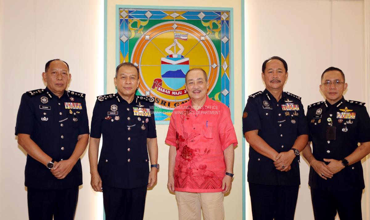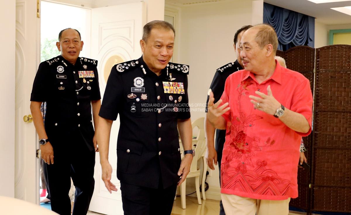 Yang Amat Berhormat Ketua Menteri menerima Kunjungan Hormat daripada Ketua Polis Negara, IGP Dato Sri Hj Mohd Khalid Hj Ismail, di Kediaman Rasmi Ketua Menteri, Sri Gaya