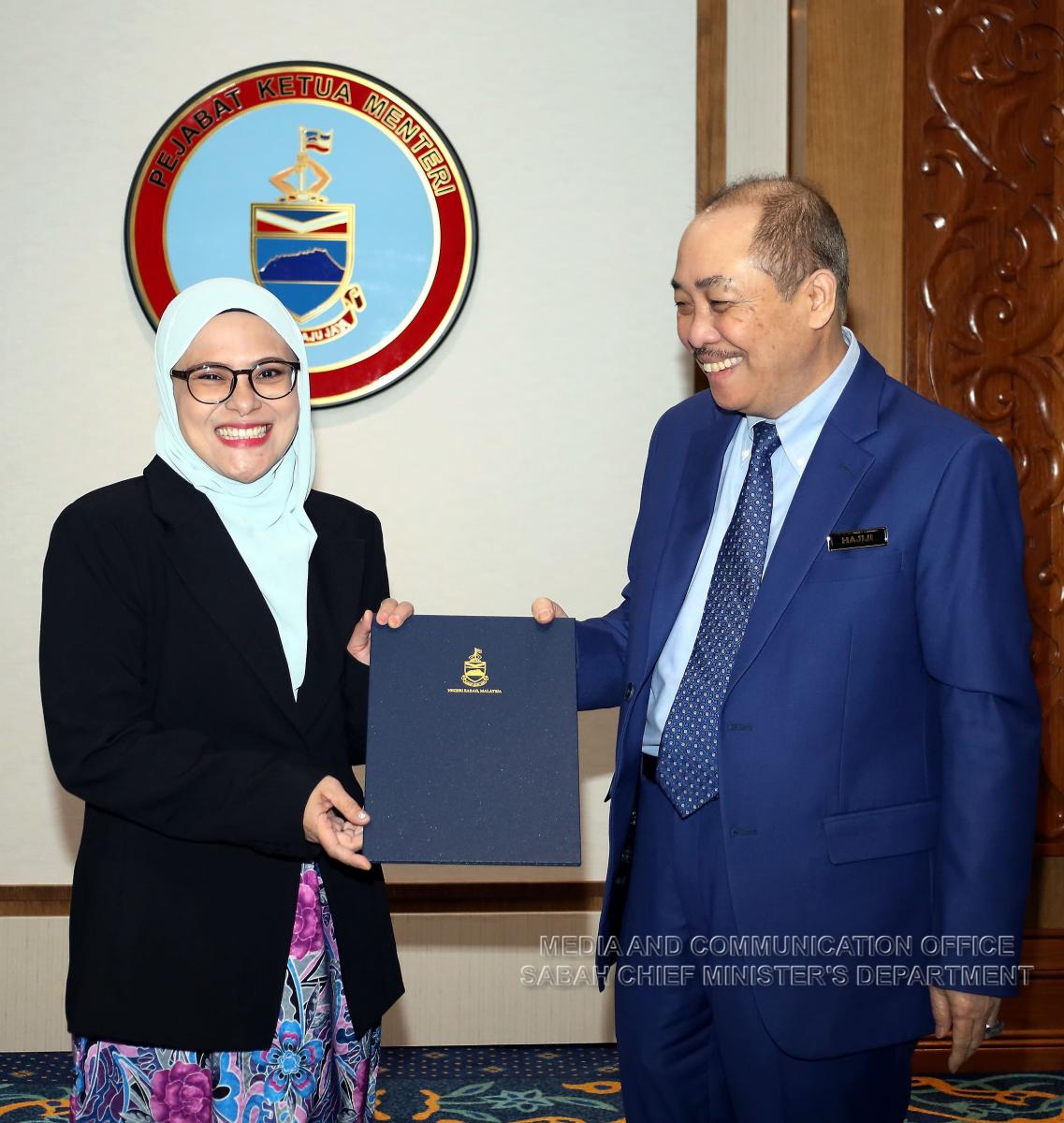 Yang Amat Berhormat Ketua Menteri menyaksikan Majlis Angkat Sumpah Setiausaha Politik yang baharu, Dayang Norhayati OKK Titing di Pejabat Ketua Menteri Menara Kinabalu