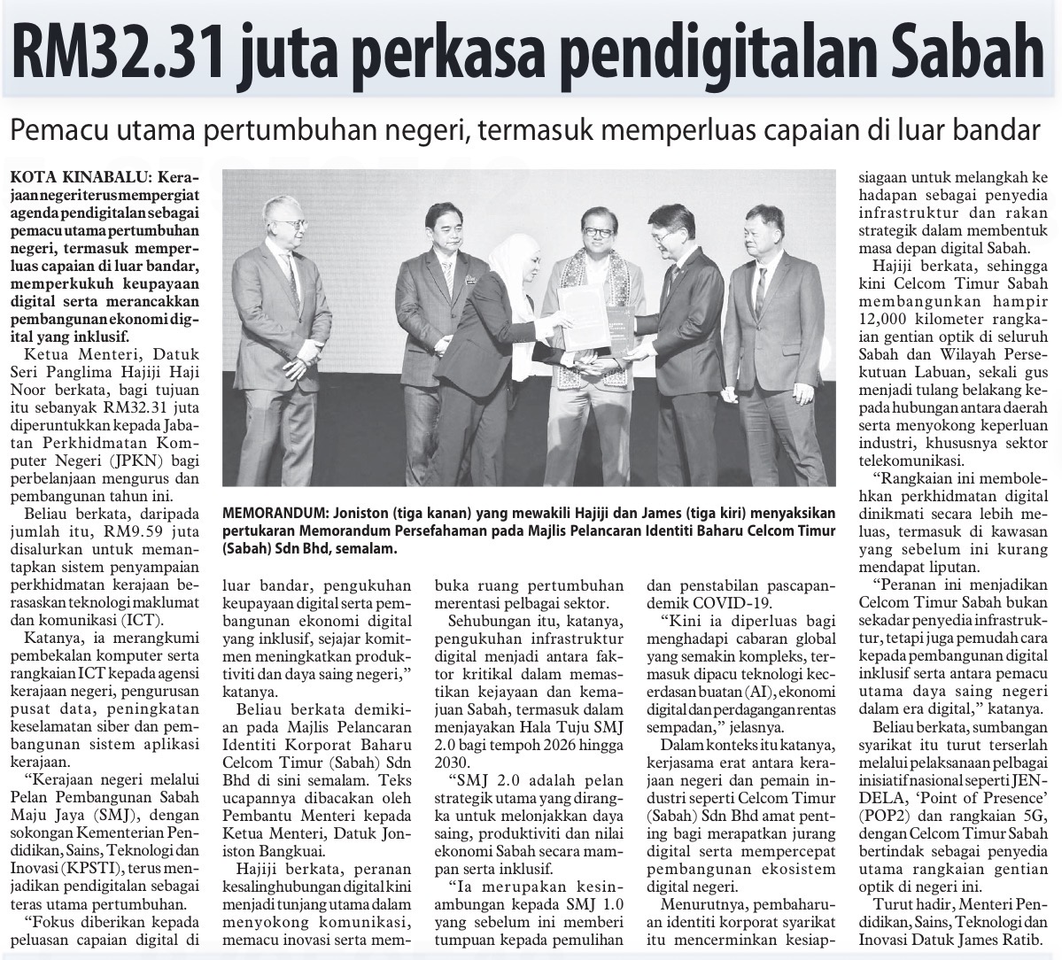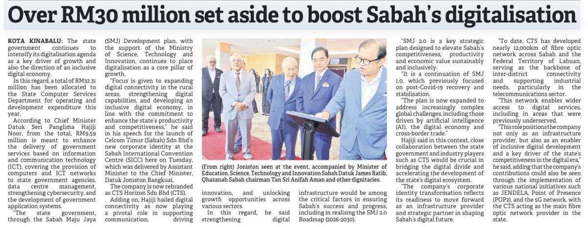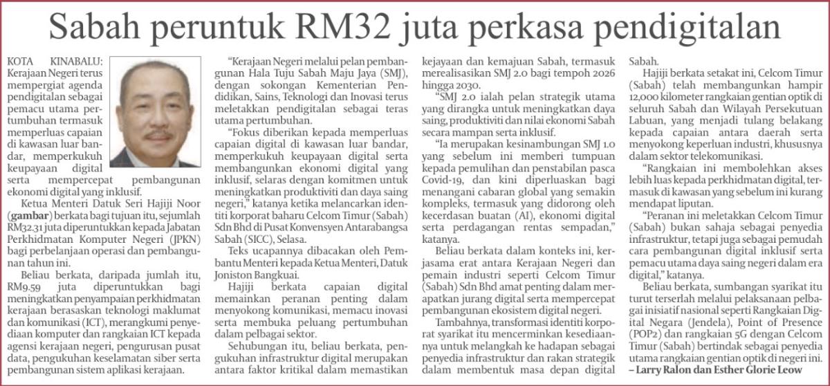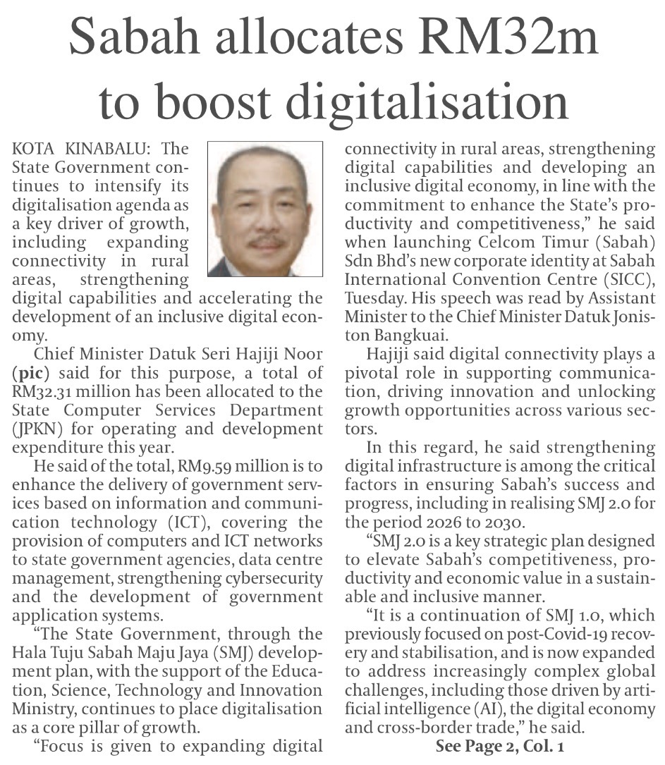 Sabah allocates RM32m to boost digitalisation (MS 1)