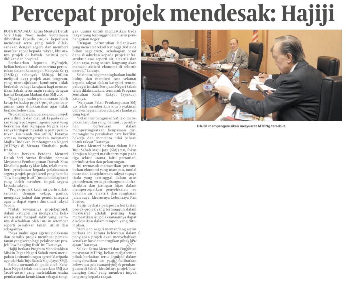 Sabah allocates RM32m to boost digitalisation (MS 2)
