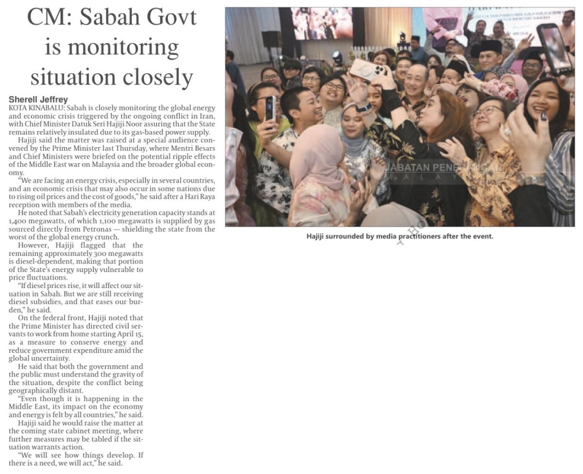 Sabah pantau rapat krisis tenaga: Hajiji