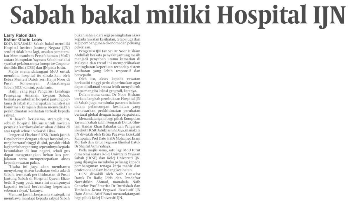 Sabah bakal miliki Hospital IJN