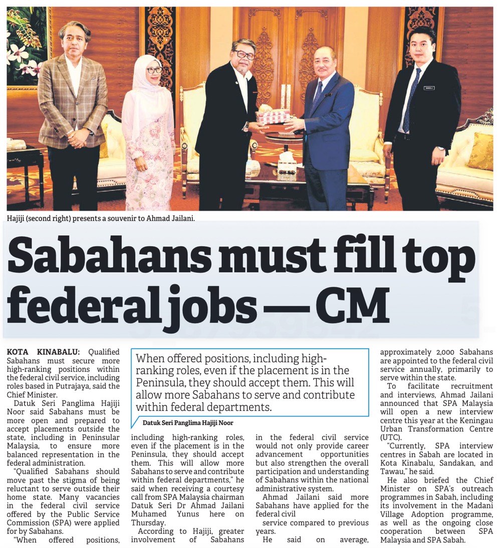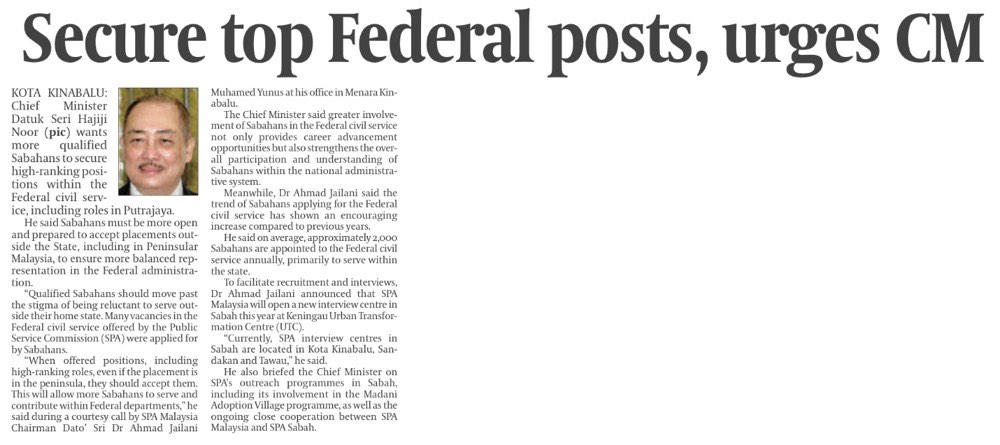 Sabahans must fill top federal jobs - CM