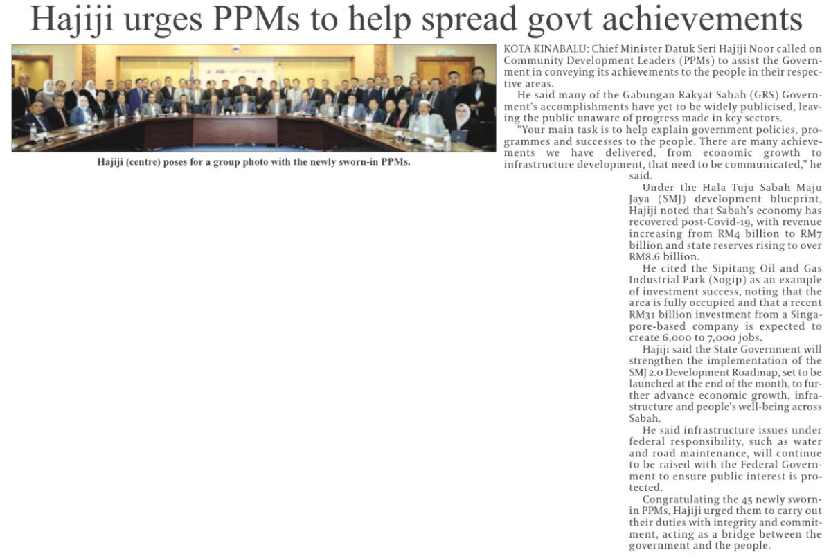 Hajiji urges PPMs to help spread govt achievements
