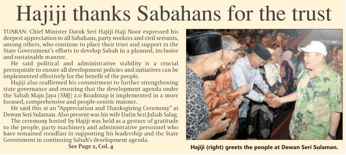 Hajiji thanks Sabahans for the trust (Page 1)