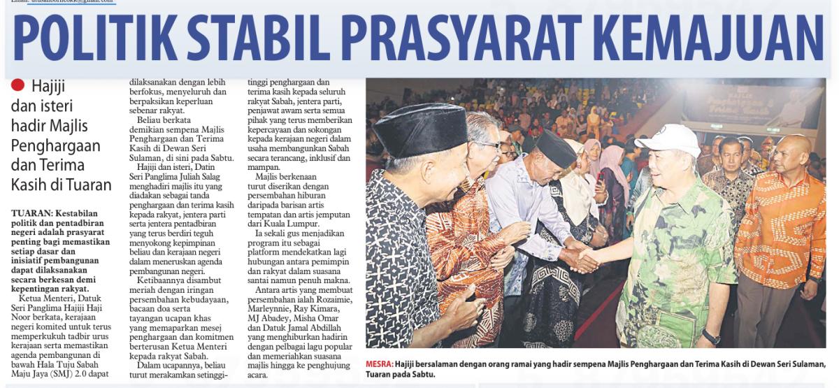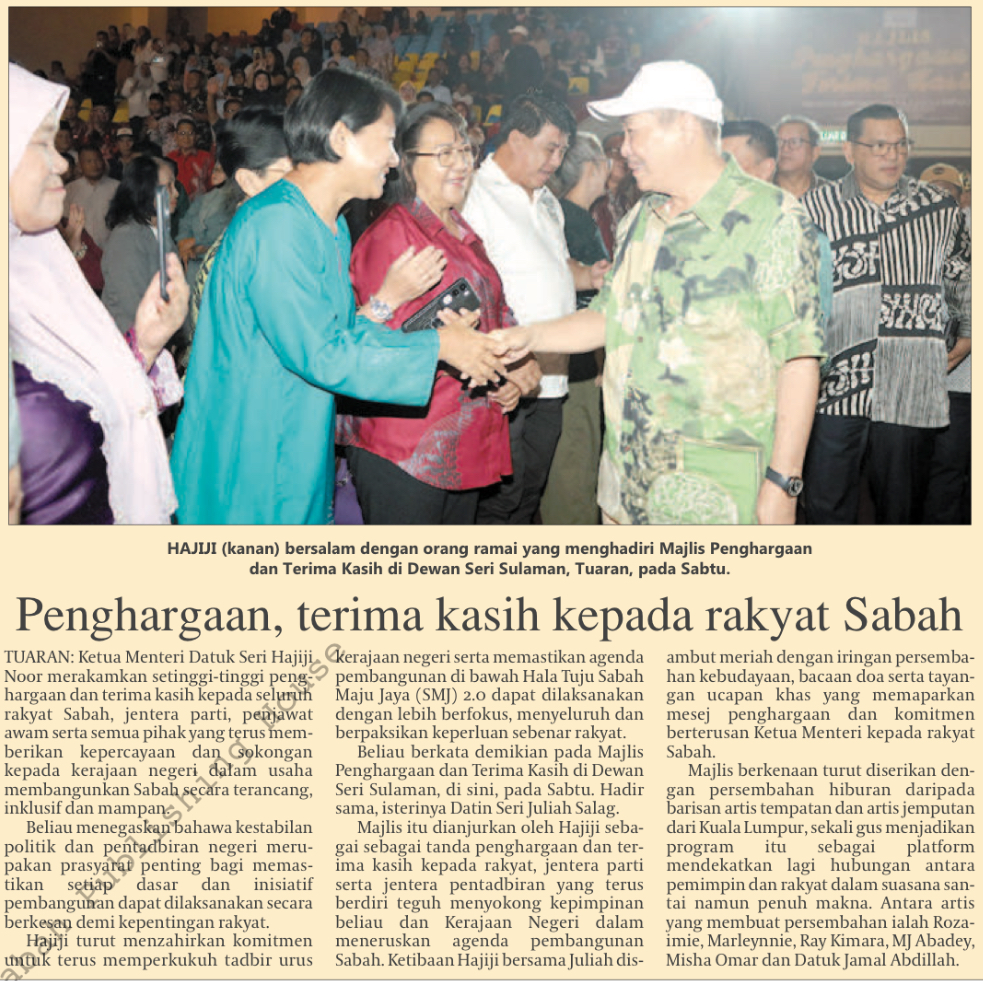 Penghargaan, terima kash kepada rakyat Sabah