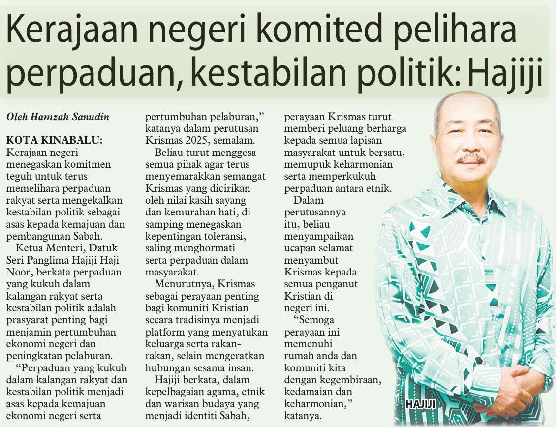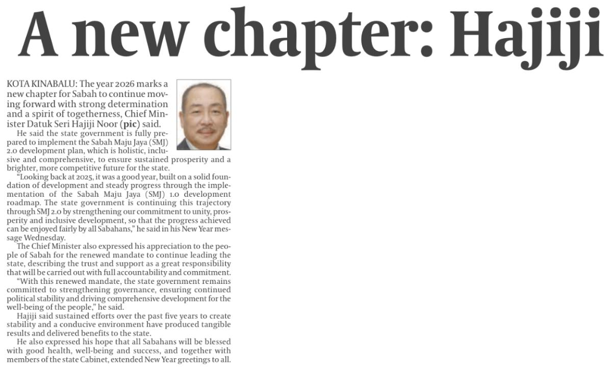 2026 buka lembaran baharu, Sabah terus mara ke hadapan: Hajiji