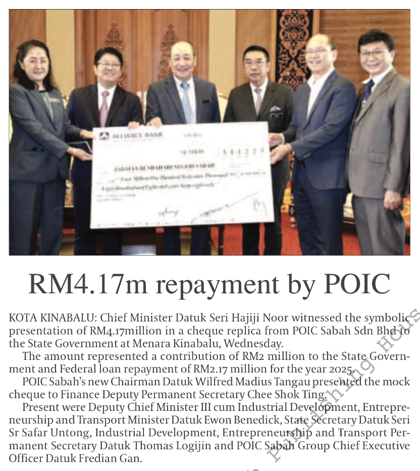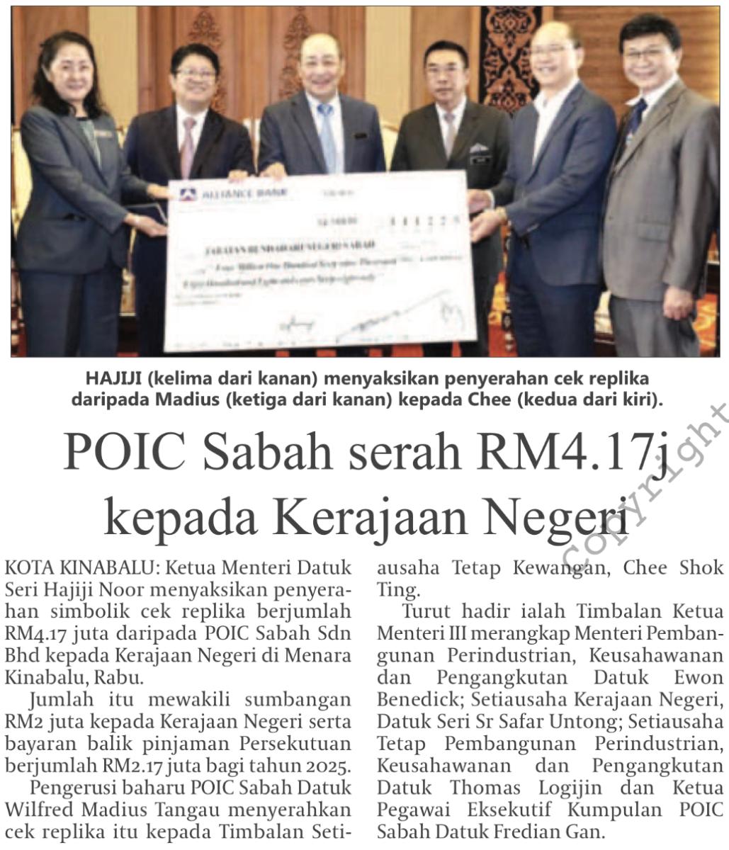 POIC Sabah serah RM4.17j8° kepada Kerajaan Negeri