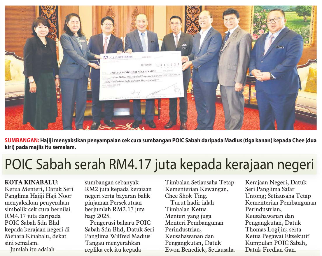 POIC Sabah serah RM4.17 juta kepada kerajaan negeri