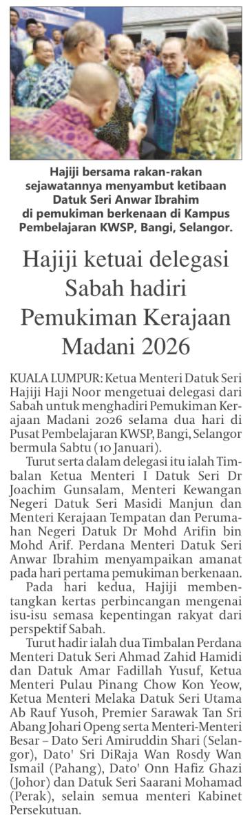 Hajiji ketuai delegasi Sabah hadiri Pemukiman Kerajaan Madani 2026