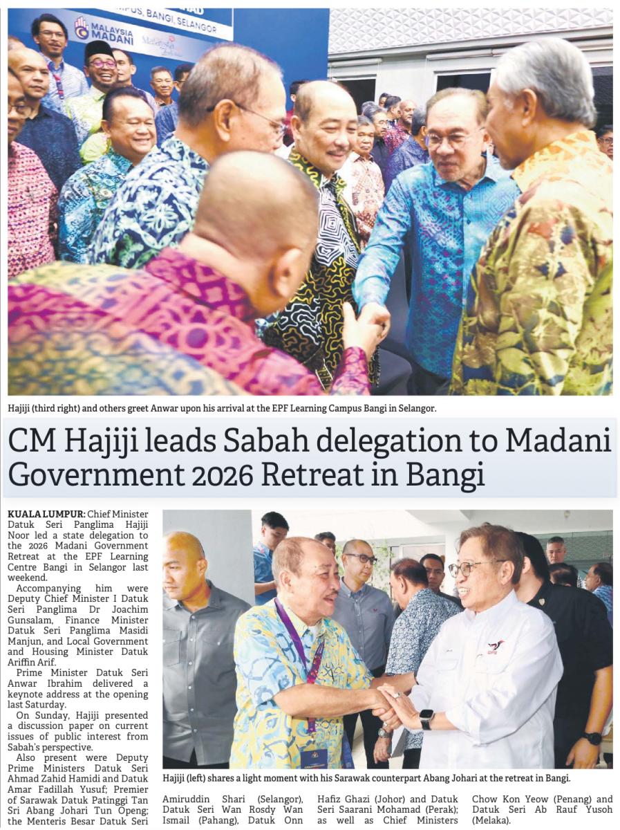 CM Hajiji leads Sabah delegation to Madani Government 2026 Retreat in Bangi