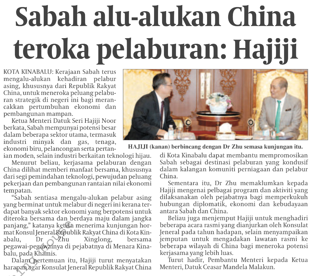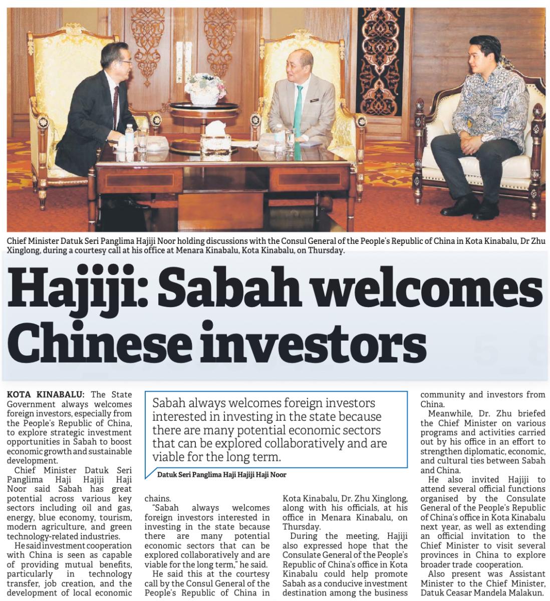 Hajiji: Sabah welcomes Chinese investors