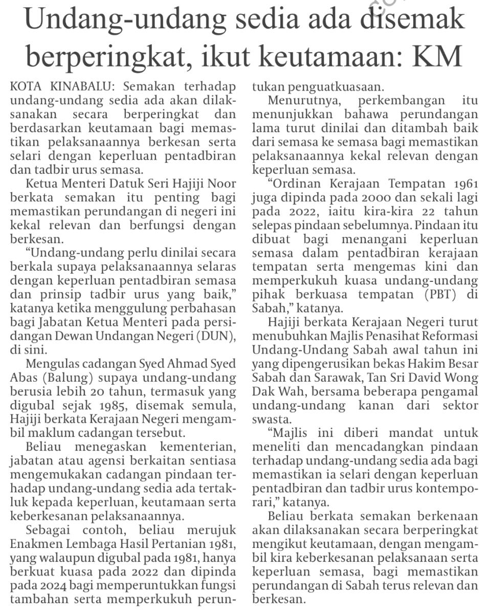 Undang-undang sedia ada disemak berperingkat, ikut keutamaan: KM