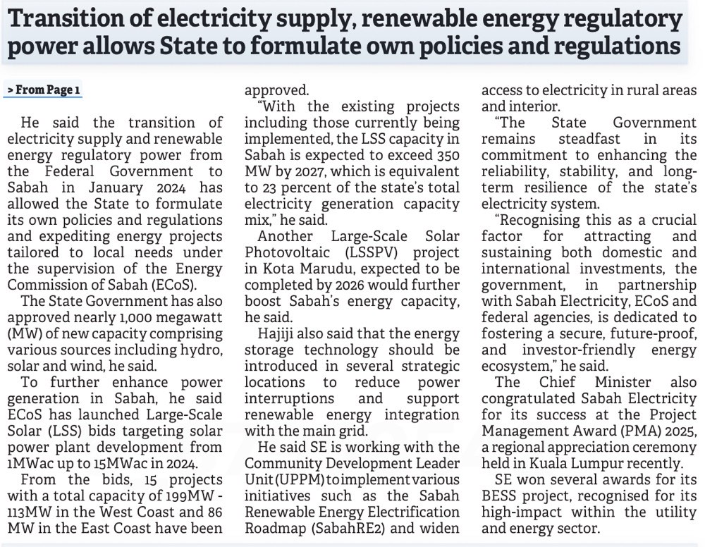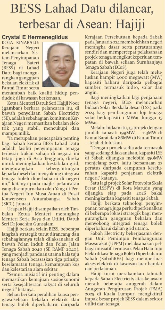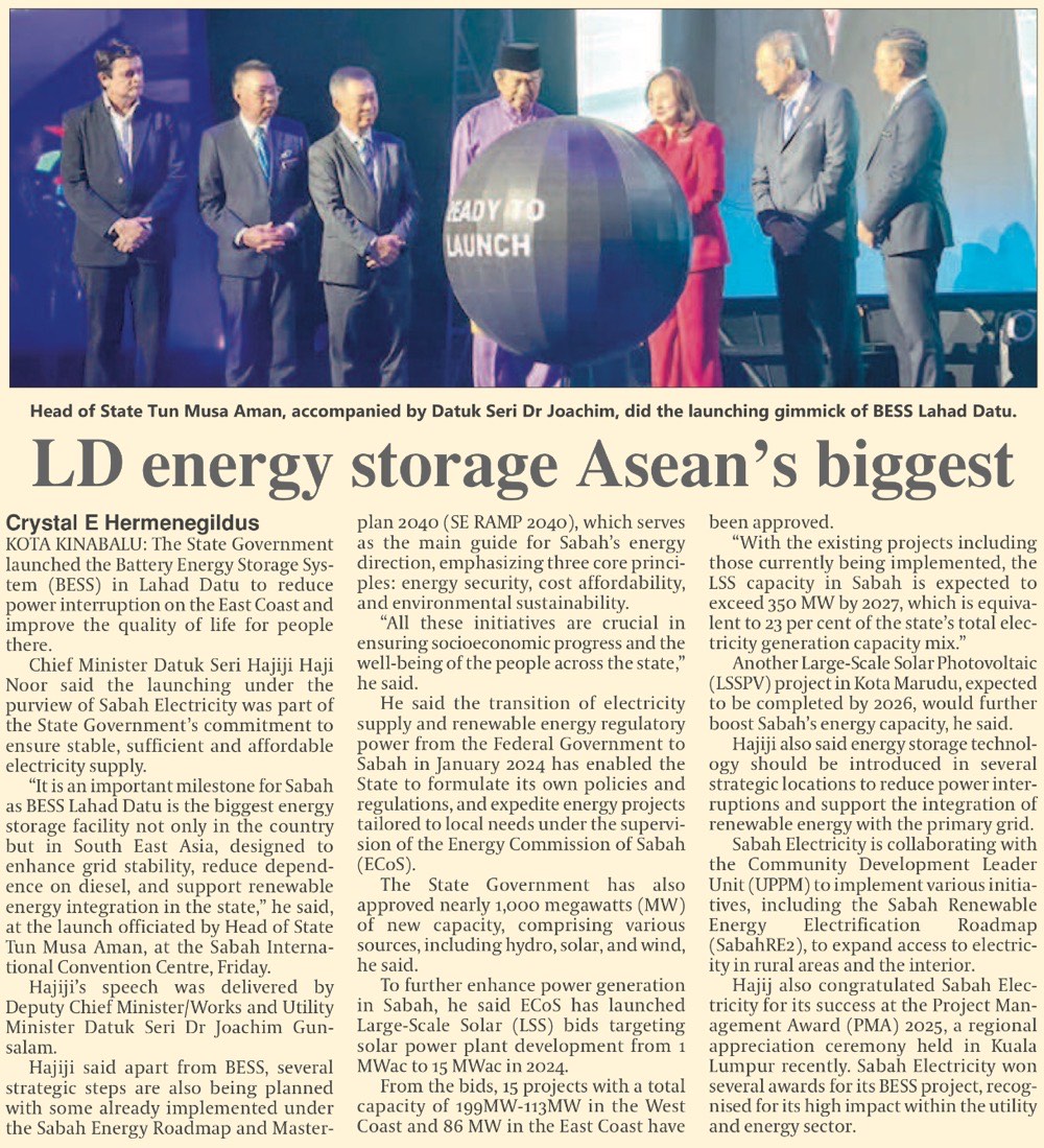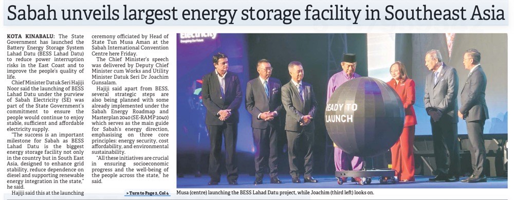 Sabah unveils largest energy storage facility in Southeast Asia (Page 1)