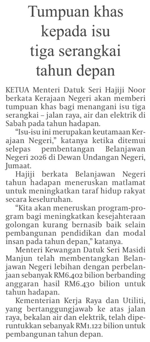 ISU TIGA SERANGKAI DIUTAMAKAN