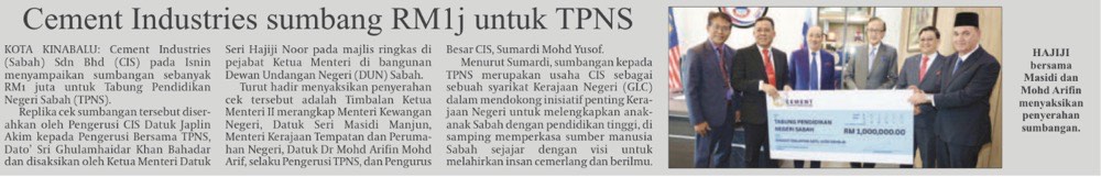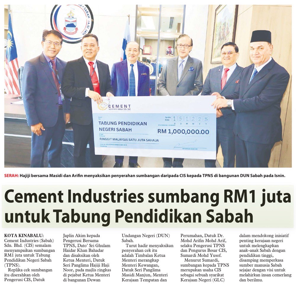 Cement Industries contributes RM1 mIn to Sabah Education Fund