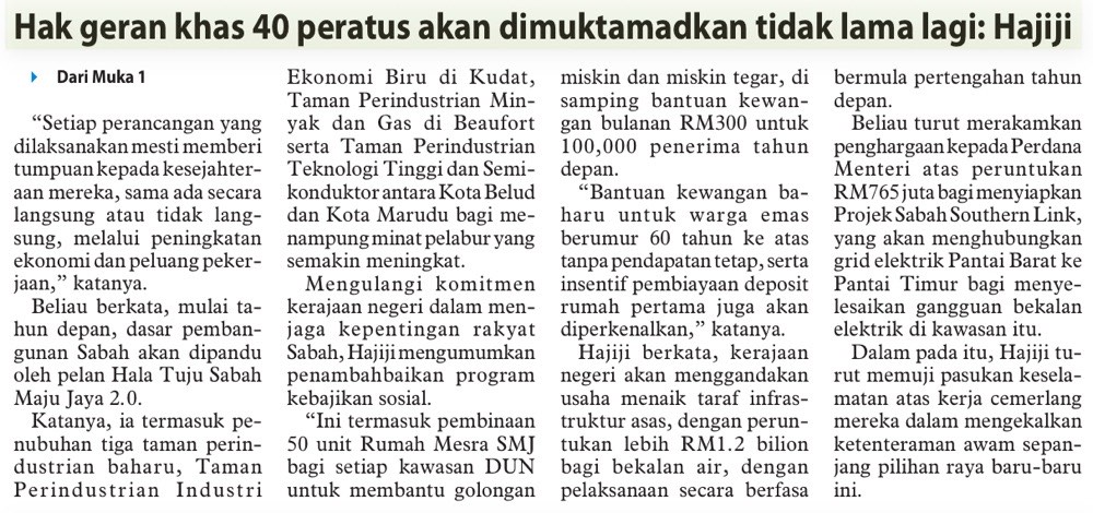 Hak geran khas 40 peratus akan dimuktamadkan tidak lama lagi: Hajiji (Page 2)
