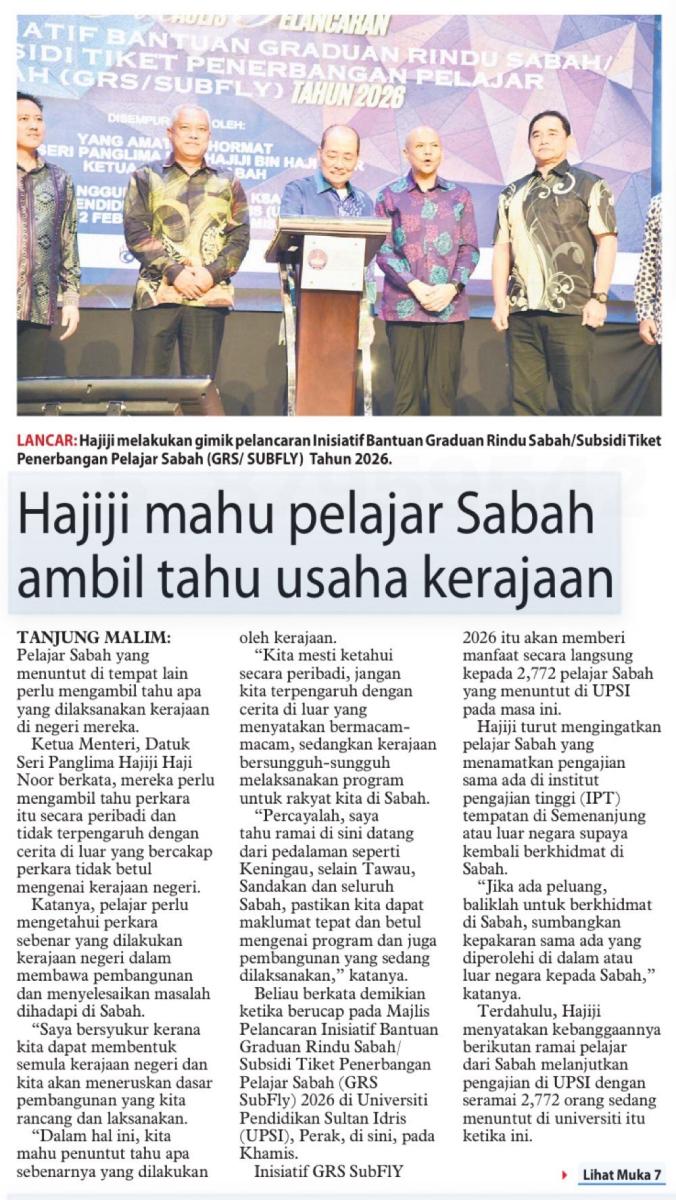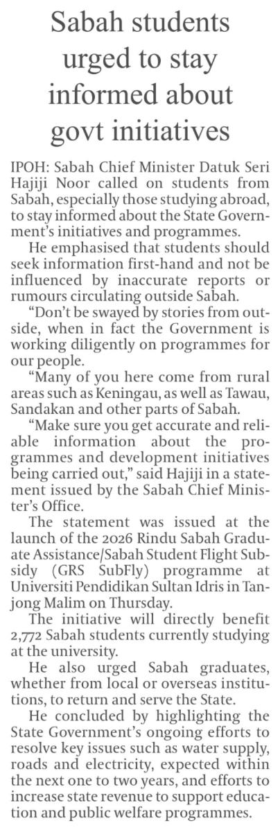 Hajiji mahu pelajar Sabah ambil tahu usaha kerajaan (MS 1)