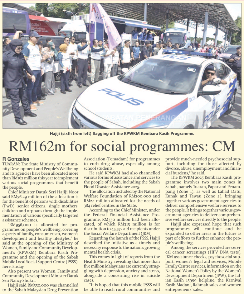 RM162m for social programmes: CM