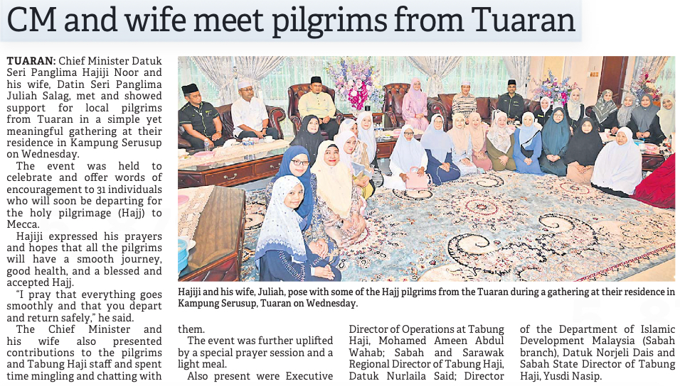 CM and wife meet pilgrims from Tuaran