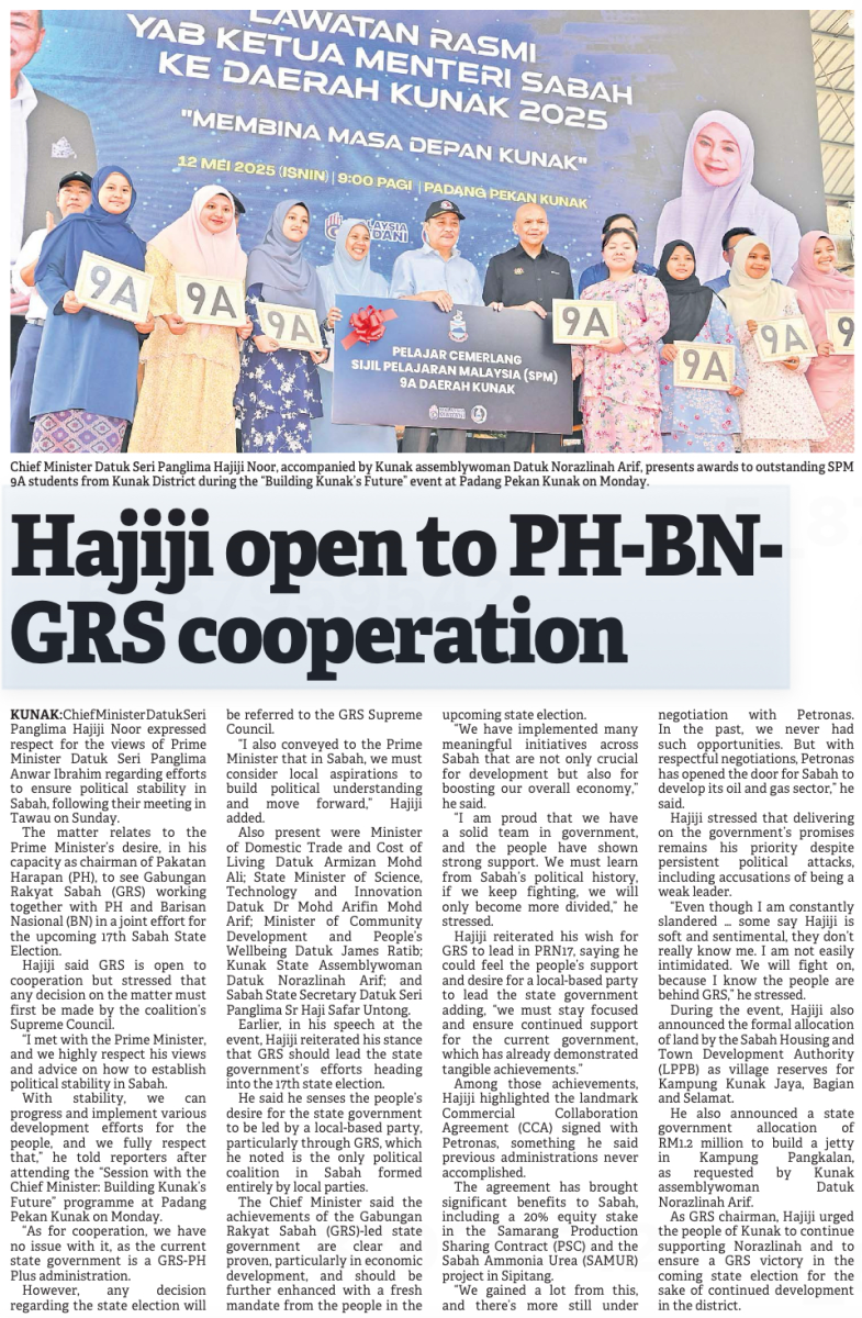 Hajiji open to PH-BN-GRS cooperation