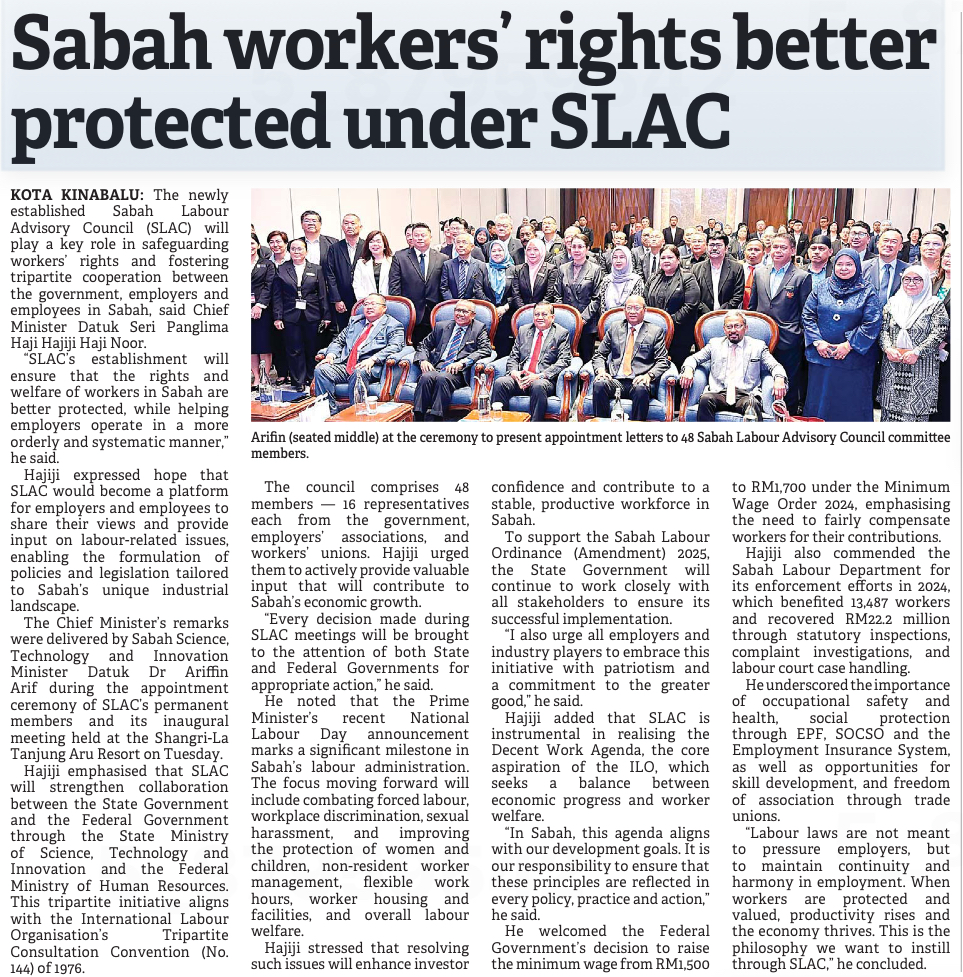 Sabah workers' rights better protected under SLAC