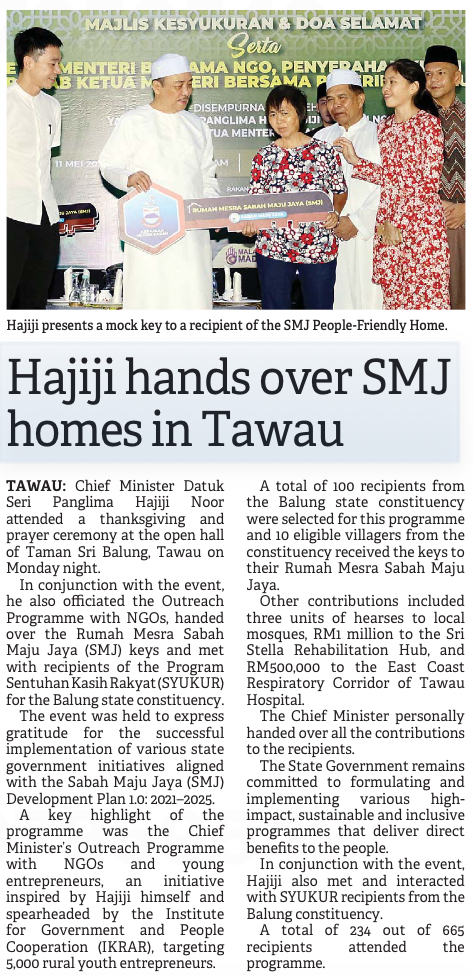 Hajiji hands over SMJ homes in Tawau
