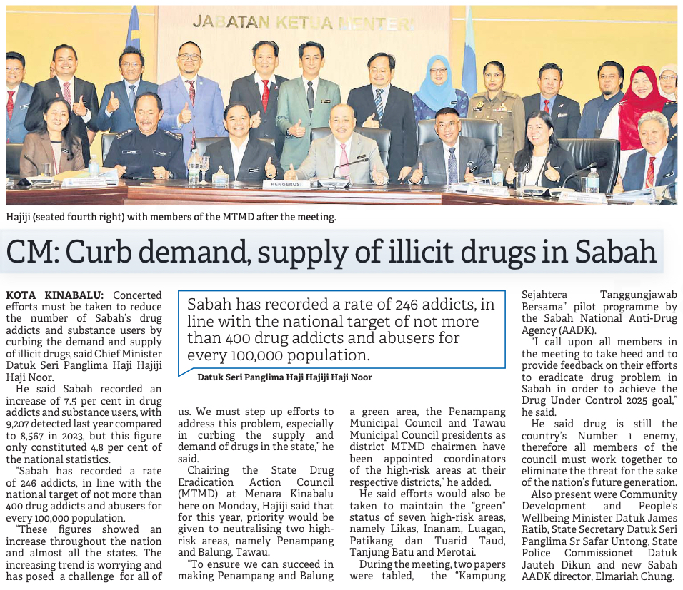 CM: Curb demand, supply of illicit drugs in Sabah