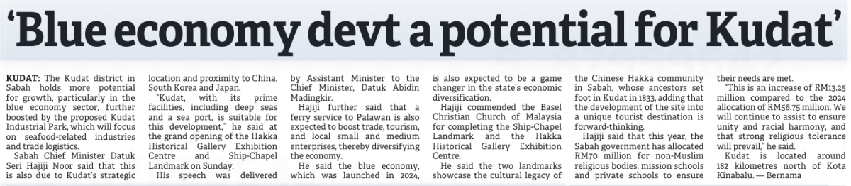 'Blue economy devt a potential for Kudat'