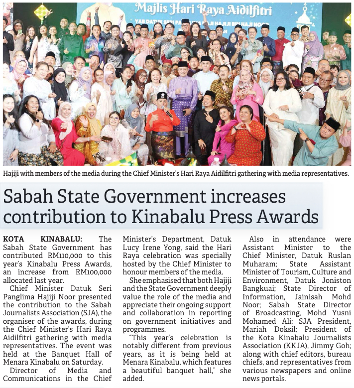 Sabah State Government increases contribution to Kinabalu Press Awards