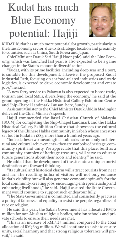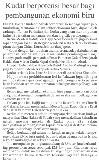 Kudat berpotensi besar bagi pembangunan ekonomi biru