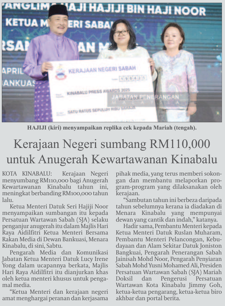 Kerajaan sumbang RM110,000 untuk Anugerah Kewartawanan Kinabalu