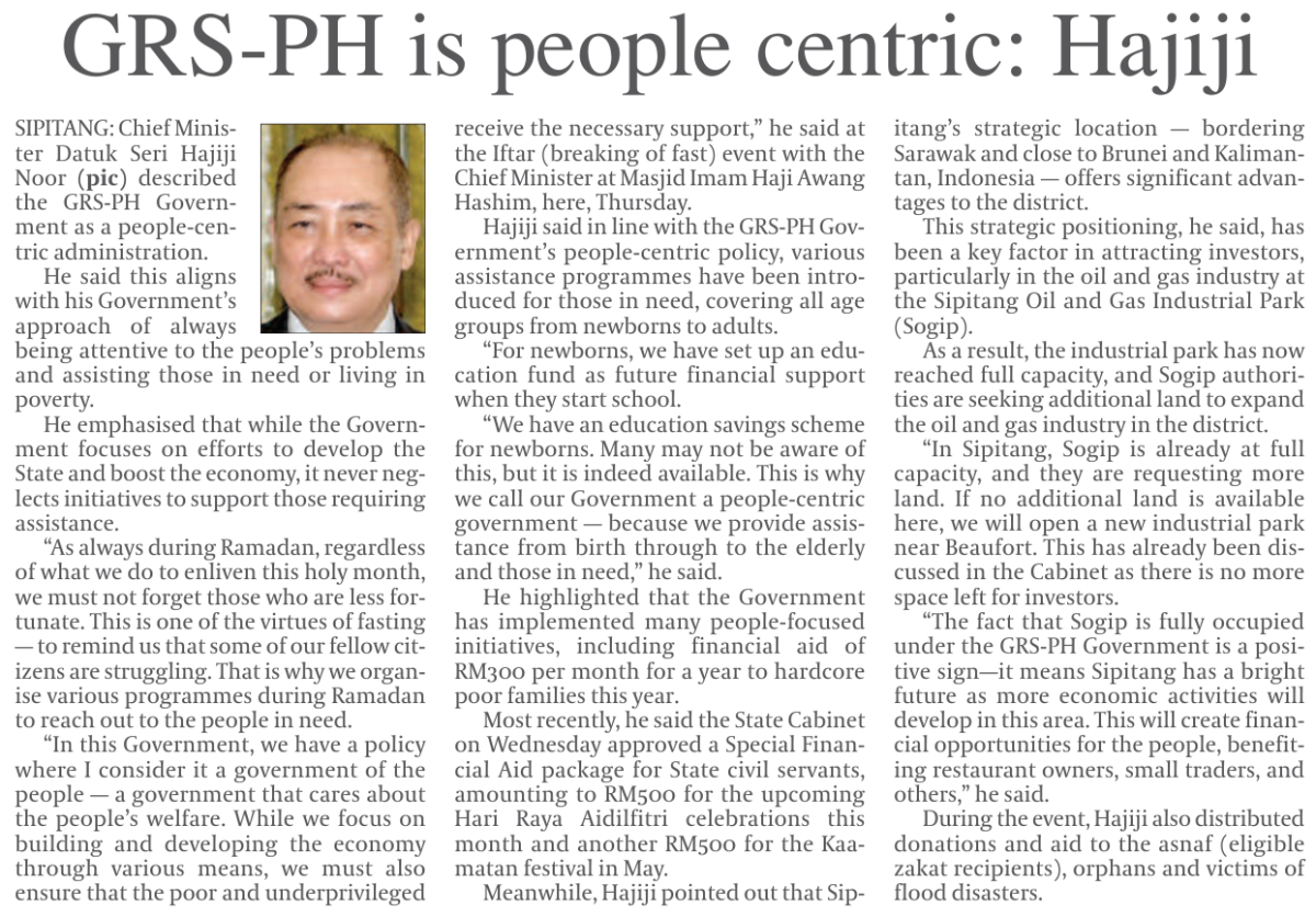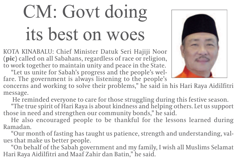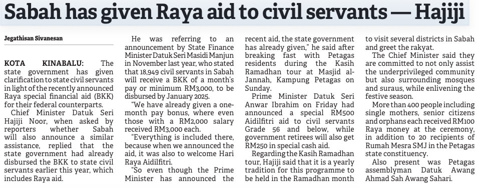 Sabah has given Raya aid to civil servants - Hajiji